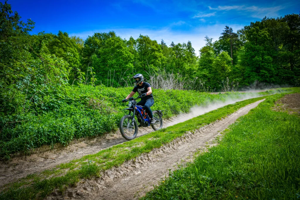 Zasięg elektrycznego crossa pozwala na swobodne przemieszczanie się po szerokim obszarze. W ciągu jednego dnia możesz przejechać przez okoliczne wsie i lasy, zatrzymać się nad stawem, odwiedzić lokalną agroturystykę albo po prostu dać się ponieść przygodzie.