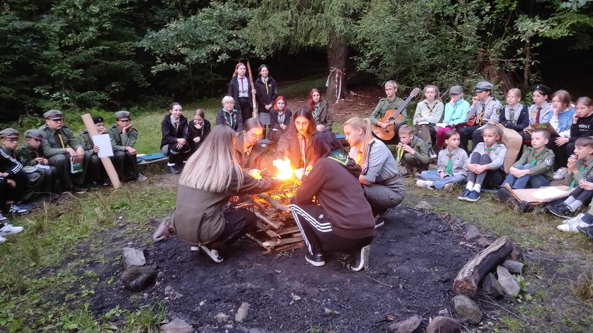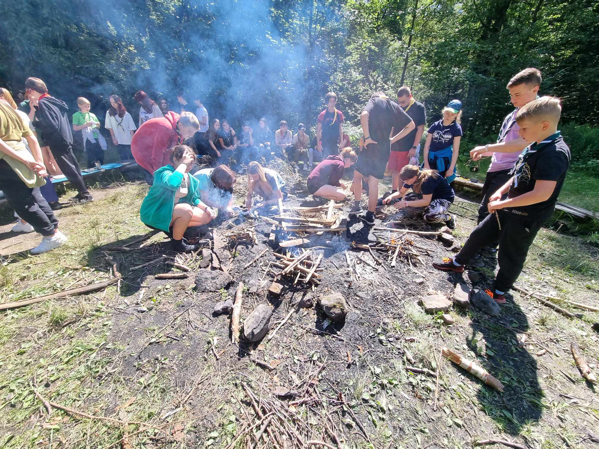 „Mistrzowie przetrwania” takie było hasło tegorocznego biwaku harcerskiego Nieobozowej Akcji Letniej, organizowanego przez Hufiec Ziemi Wadowickiej ZHP. W dniach 10-14 sierpnia 2023 r. na terenie Harcerskiej Bazy Obozowej „Zalesie” harcerze oraz młodzież w wieku 11 – 17 lat dążyła do zostania „Mistrzami przetrwania” i tym samym przeniosła się do ery kamienia. Przez pięć dni harcerze poznawali techniki survivalu oraz doskonalili techniki harcerskie. Pierwszego dnia zastępy wymyślały swoje nazwy oraz przygotowywały swoje logo, aby podczas ogniska móc się zaprezentować. Uczestnicy wzięli udział w której prelekcji na temat bezpieczeństwa oraz postępowania w czasie ewakuacji. Podczas trwania biwaku harcerze uczestniczyli w wielu zajęciach w wielu zajęciach na których uczyli się m.in.: budowania szałasów, filtracji wody, kuchni polowej czy wiązania węzłów. „Mistrzowie przetrwania” ćwiczyli, również swoją orientację w terenie, pomysłowość oraz współpracę podczas zwiadu, podchodów czy „Harcmagedonu”. W ostatni dzień survivalowej przygody harcerze wybrali się na wycieczkę do parku linowego w Zawoi, bo wiadomym nie od dziś jest to, że każdy „Mistrz przetrwania” powinien być odważny i zwinny. Po pięciu dniach nauki technik survivalowych każdy uczestnik biwaku był gotów, aby nazwać się „Mistrzem Przetrwania”.