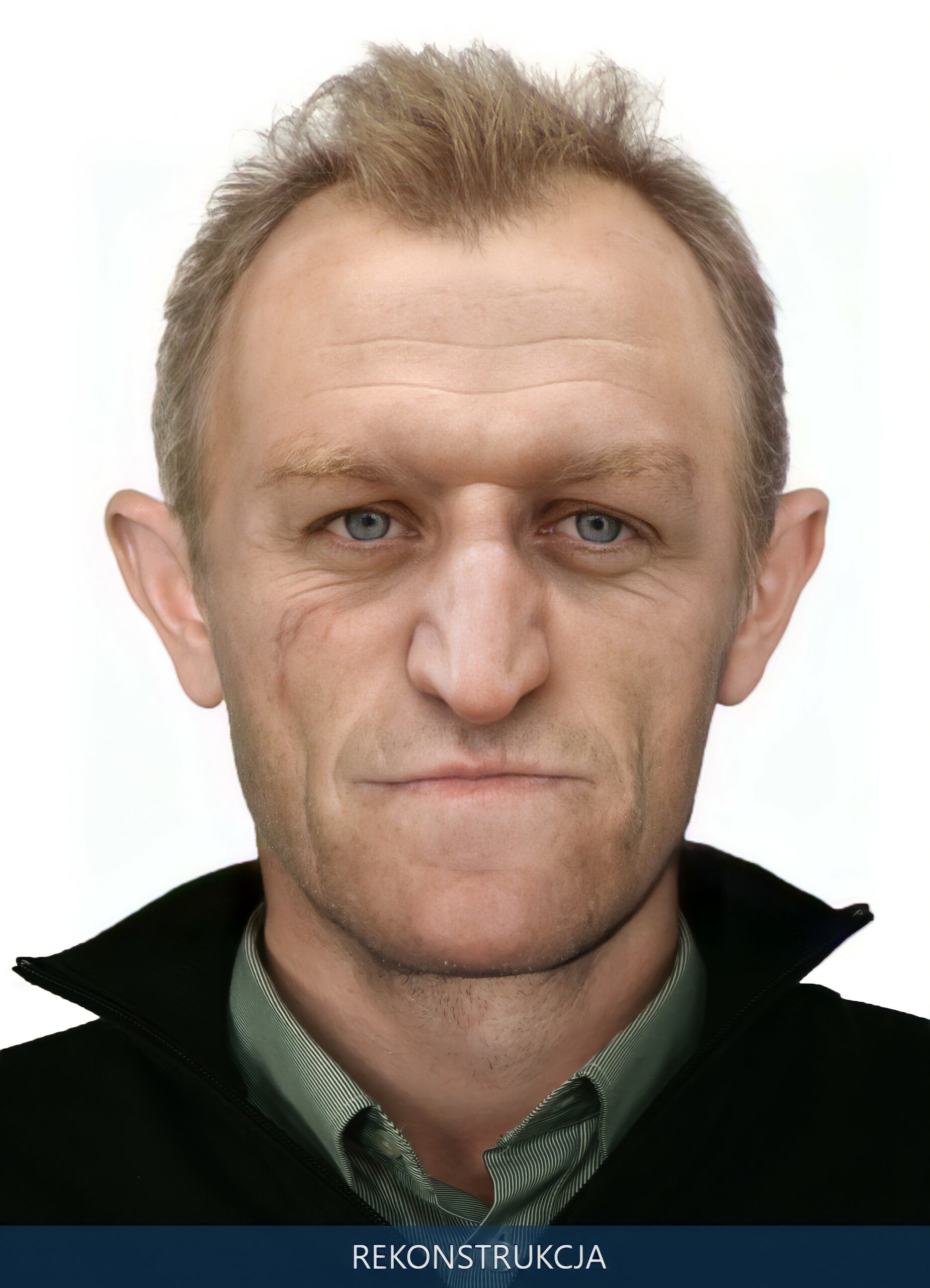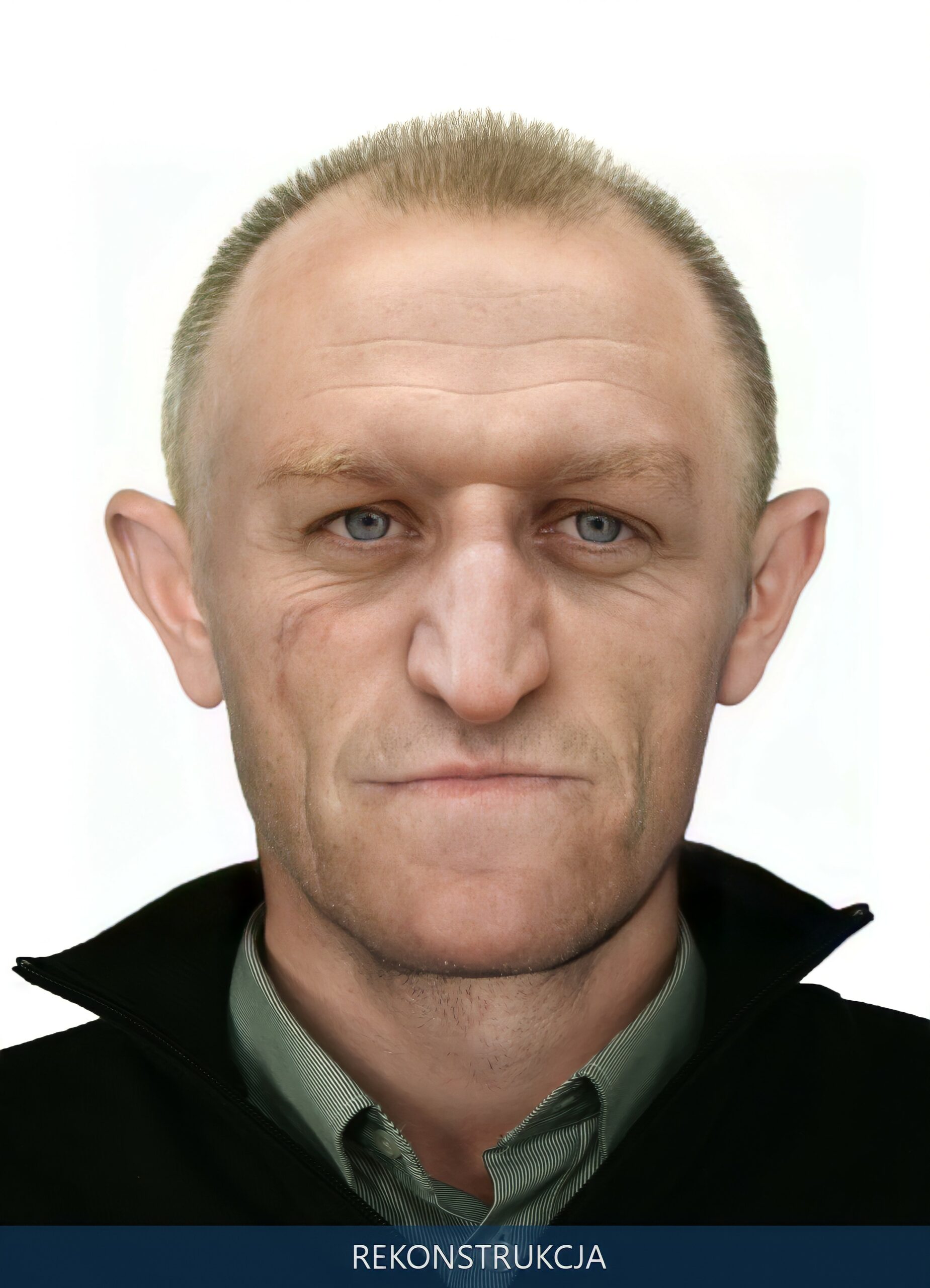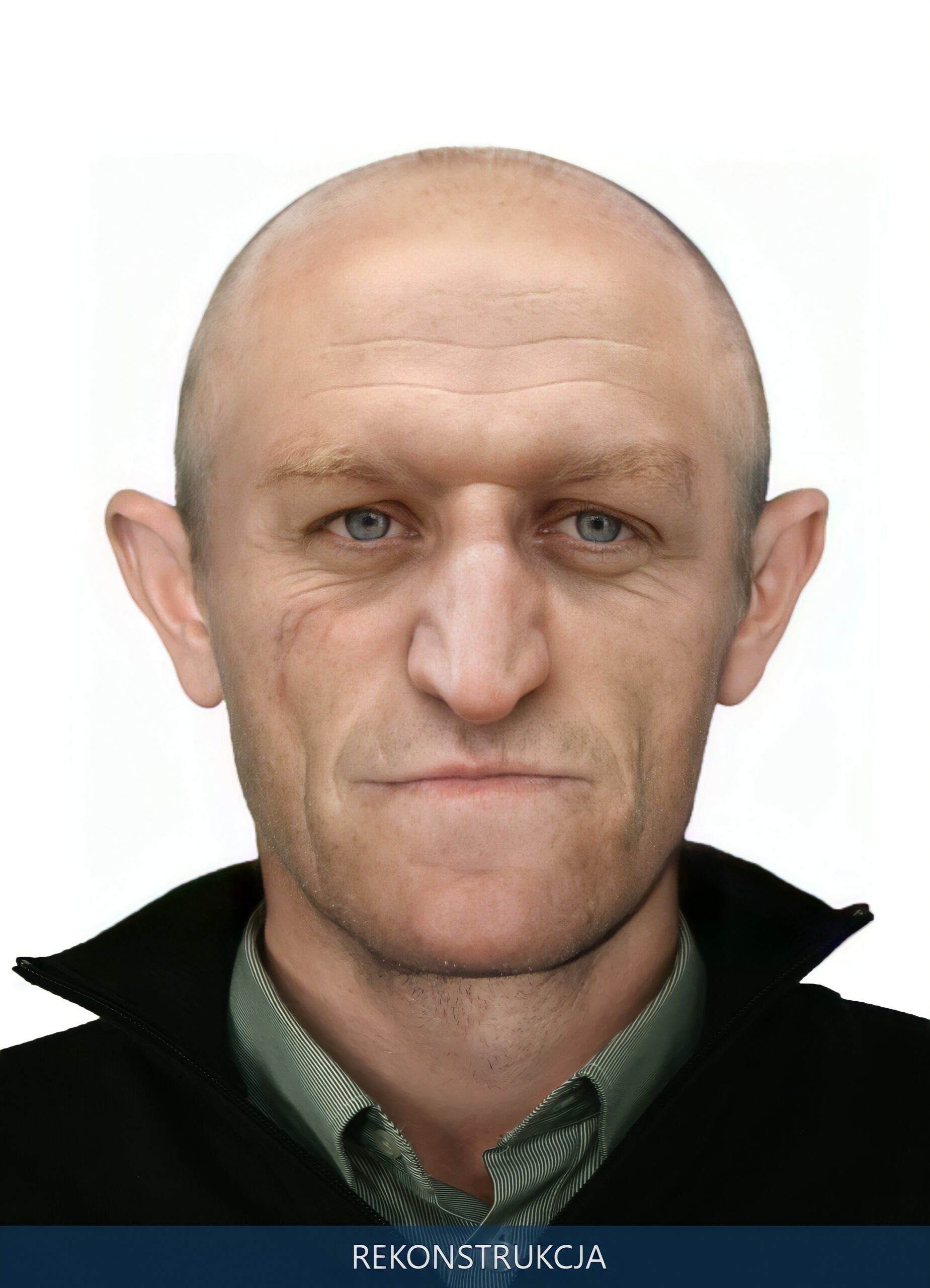 Następnie odtworzeniem przybliżonego przeżyciowego wyglądu głowy zajęli się specjaliści Centralnego Laboratorium Kryminalistycznego Policji. Opracowali oni przybliżony wygląd twarzy i głowy mężczyzny uwzględniając różne typy fryzur.
