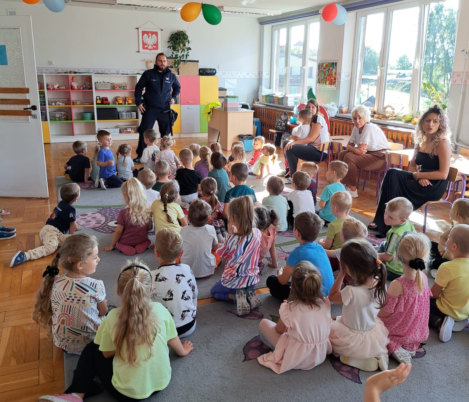 Dzielnicowi odwiedzili Przedszkole w Piotrowicach oraz dwa przedszkola w Przeciszowie. Podczas spotkania policjanci poruszyli zagadnienia dotyczące bezpieczeństwa dziecka w domu i na placu zabaw oraz w Internecie. Zwrócili również uwagę na bezpieczeństwo dziecka podczas podróży samochodem, przypominając o obowiązku jazdy w foteliku, a także przypominali, że dziecko po drodze samodzielnie może poruszać się dopiero po ukończeniu siódmego roku życia. Następnie opowiedzieli dzieciom o zadaniach policjantów realizowanych na rzecz bezpieczeństwa mieszkańców, w tym o szczególnej roli dzielnicowego. Omówili wyposażenie służbowe policjanta, a także pokazali radiowóz i różnego rodzaju sprzęt wykorzystywany w służbie.