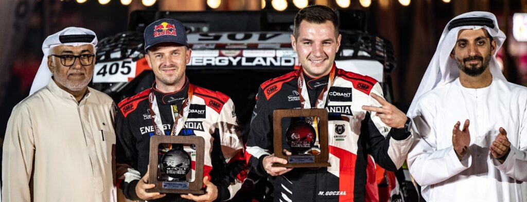 Czy można sobie wyobrazić coś lepszego niż zdobycie całego podium przez jeden zespół – polską załogę Energylandia Rally Team? Wspaniała wiadomość dla Polski ze świata motor sportu cieszy jeszcze bardziej, gdyż złoto przywozi Eryk Goczał, który zadebiutował w rajdzie Dubai International Baja i od razu uplasował się na pierwszym miejscu. To bardzo dobrze rokuje w kontekście zbliżającego się wielkimi krokami Rajdu Dakar, w którym młody rajdowiec reprezentujący Energylandia Rally Team weźmie udział. Miniony rajd traktowany jest jako zasadniczo najlepszy trening przed najważniejszym wydarzeniem sezonu, od które dzieli nas niespełna miesiąc. Eryk Goczał pilotowany był przez Oriola Mena. Duet zasługuje na uznanie, ale jednocześnie postawił przez sobą wysoko postawioną poprzeczkę! Swoją radość ze zwycięstwa Eryk Goczał okazał w słowach: