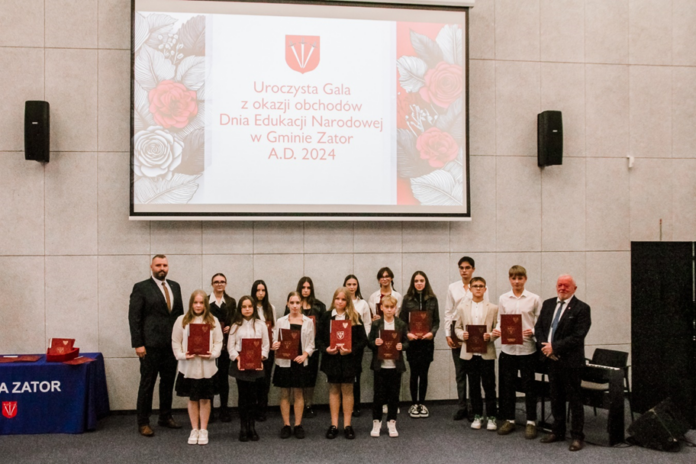 W dniu 11 października 2024 roku odbyła się w naszej Gminie uroczysta Gala z okazji obchodów Dnia Edukacji Narodowej. Z tej okazji Burmistrz Zatora Szymon Matyja wraz z Przewodniczącym Rady Miejskiej w Zatorze Panem Stanisławem Orlickim wręczyli listy gratulacyjne dla absolwentów i uczniów szkół, którzy otrzymali stypendia Gminy Zator za wyniki w nauce oraz wybitne osiągnięcia w ramach Programu Stypendialnego Gminy Zator. Stypendia i listy gratulacyjne otrzymali: