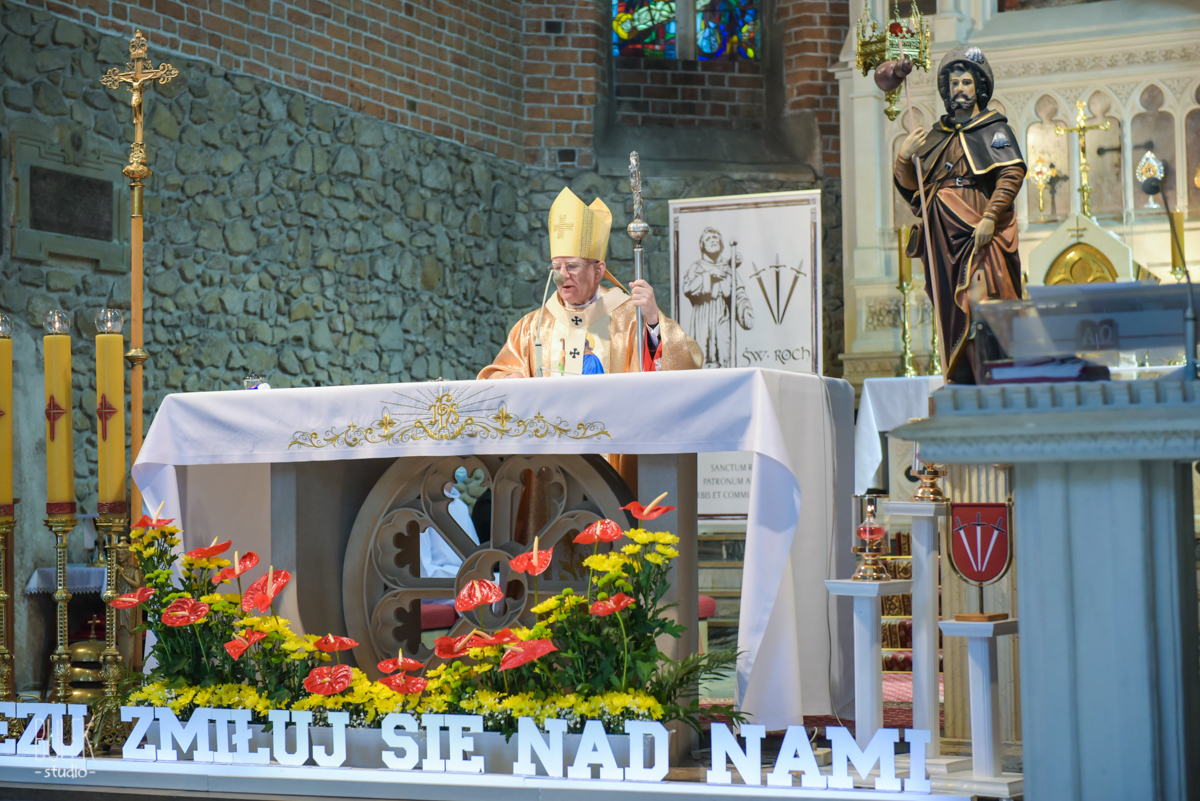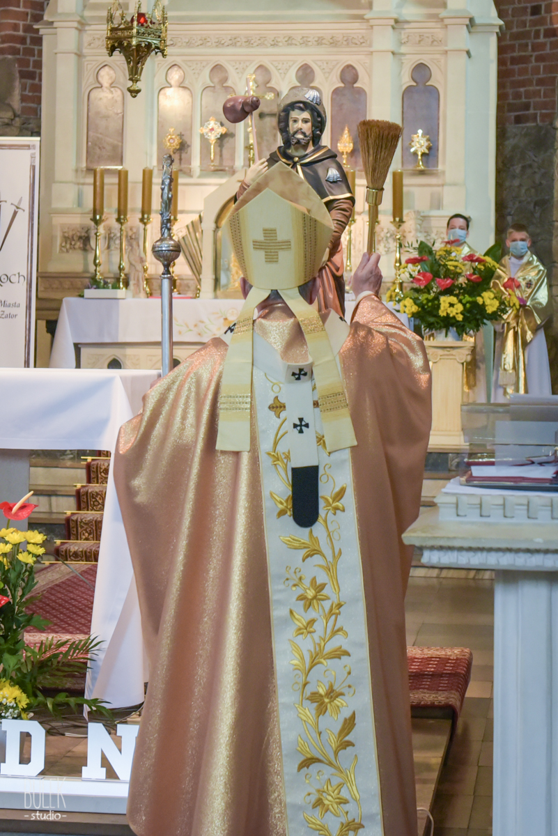 „ŚW. ROCH USTANOWIONY PATRONEM MIASTA I GMINY ZATOR Z NADANIA STOLICY APOSTOLSKIEJ NA PROŚBĘ MIESZKAŃCÓW, ZATOR 2020”.
