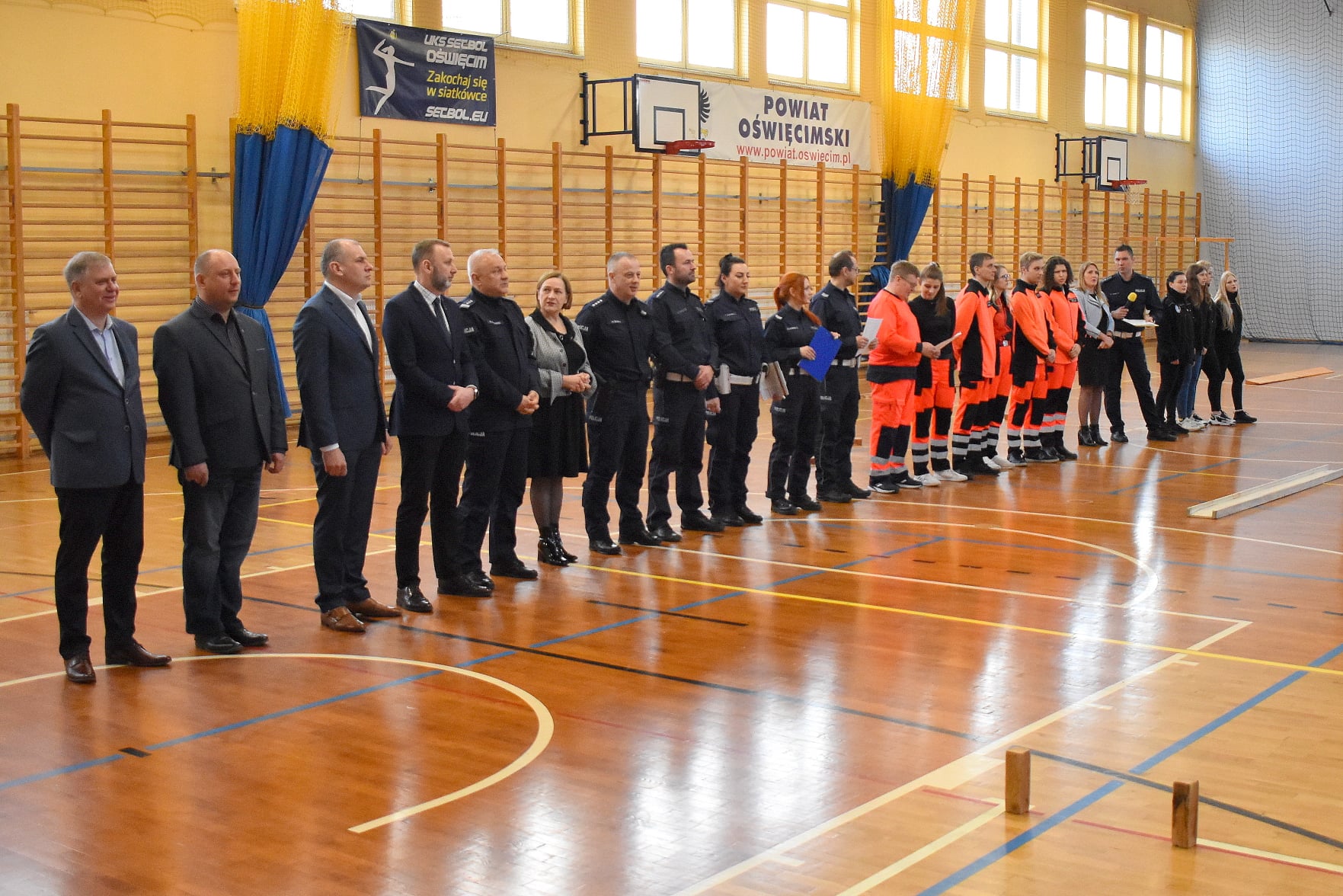 Za pomoc w organizacji Turnieju oświęcimscy policjanci dziękują przedstawicielom Ośrodka Kultury w Brzeszczach, Powiatowego Zespołu Nr 2 Szkół Ogólnokształcących Mistrzostwa Sportowego i Technicznych w Oświęcimiu, Szkoły Podstawowej Nr 9 w Oświęcimiu, ratownikom medycznym Andrzejowi Dziędziel i Darii Szewczyk oraz Krzysztofowi Klimczak, uczennicom Powiatowego Zespołu Szkół numer 6 w Brzeszczach oraz uczennicom Powiatowego Centrum Kształcenia Technicznego i Branżowego w Oświęcimiu.
