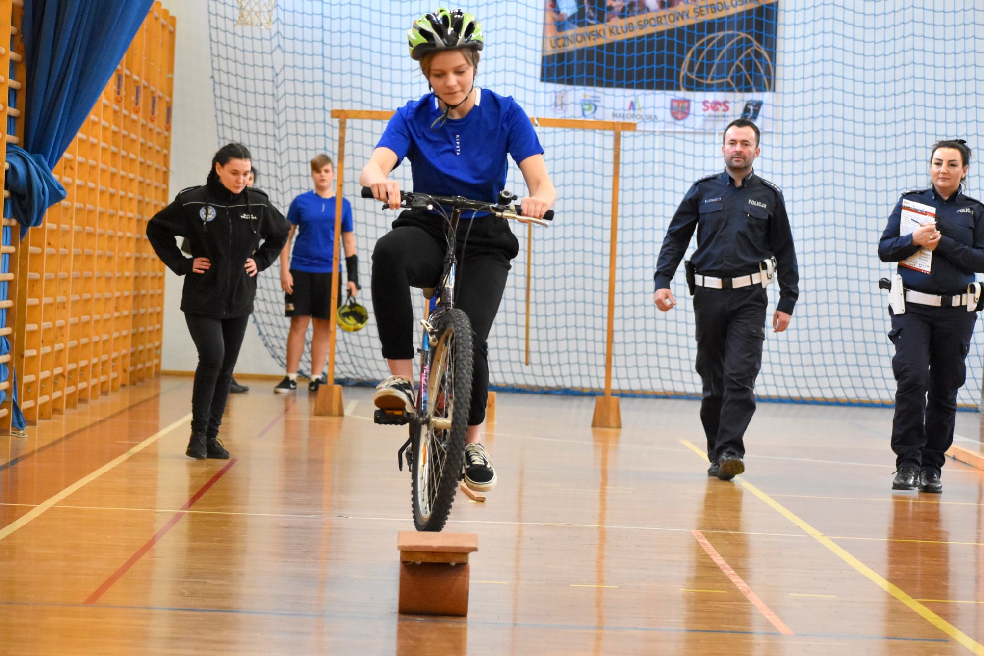 W czwartek 7.04.2022r w hali sportowej oświęcimskiego „chemika” odbył się finał eliminacji powiatowych. Turniej oficjalnie rozpoczęli: Komendant Powiatowy Policji w Oświęcimiu inspektor Robert Chowaniec, Pani Teresa Jankowska Członek Zarządu Powiatu w Oświęcimiu, Pan Krzysztof Kania Wiceprezydent Miasta Oświęcim, Pan Krzysztof Jan Klęczar Burmistrz Kęt, Pan Mariusz Gałgan Wójt Polanki Wielkiej oraz gospodarz obiektu Dyrektor Powiatowego Zespołu Szkół nr 2 w Oświęcimiu Pan Jacek Stoch. Powitali oni młodych uczestników turnieju oraz ich opiekunów, którym życzyli powodzenia w zmaganiach na rowerowym torze przeszkód oraz w zadaniach przygotowanych przez ratowników medycznych z zakresu pierwszej pomocy.