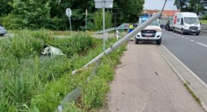 Dziś (4.07.2024) przed południem na terenie gminy Brzeszcze policjanci oświęcimskiej drogówki pilnowali bezpieczeństwa w ruchu drogowym. Około godziny 12.30 dali sygnał do zatrzymania się kierowcy samochodu marki Renault, który jechał z prędkością 71 km/h na odcinku, na którym obowiązywało ograniczenie prędkości do 50 km/h. Niestety kierowca renault nie zatrzymał się, więc policjanci podjęli pościg. W Osieku na ulicy Głównej w rejonie skrzyżowania z ulicą Bugaj renault uderzyło bocznie w inny pojazd w wyniku czego wypadło z jedni i uderzyło w słup energetyczny, po czym dachowało w przydrożnym rowie.