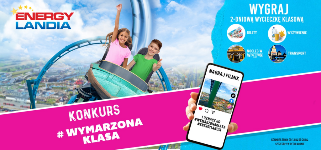 W Energylandii wystartowała wiosenna edycja konkursu #wymarzonaklasa, który od 2022 roku przyciąga tysiące uczniów. Wydarzenie to jest świetną okazją do wspólnej zabawy i integracji, a dodatkowo może doprowadzić uczestników do niecodziennej nagrody, jaką jest dwudniowa wycieczka do Energylandii, wraz z transportem, wyżywieniem i noclegiem w Western Camp Resort! Szansę na wygraną ma każde zgłoszenie, a dzięki różnorodności atrakcji Parku Rozrywki, wyprawa ta odpowiednia będzie zarówno dla uczniów klas najmłodszych, jak i tych ponadpodstawowych! Oznacza to, że konkurs dedykowany jest dla wszystkich, którzy wierzą w wyjątkowość swojej grupy i chcą podzielić się tą informacją z innymi! Zobacz, jak wziąć udział w konkursie!