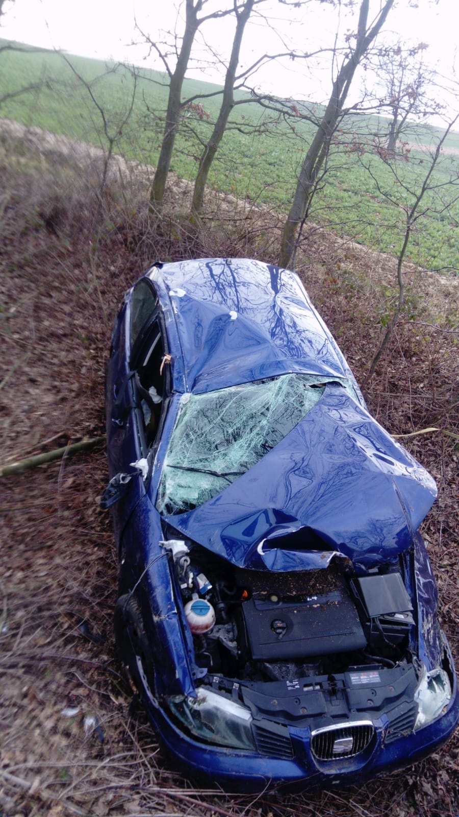 „W trakcie czynności policjanci z Wydziału Ruchu Drogowego ustalili, że 19 – letni mieszkaniec gminy Przeciszów, kierując samochodem marki Seat stracił panowanie nad pojazdem, a następnie zjechał z jezdni i dachował.”