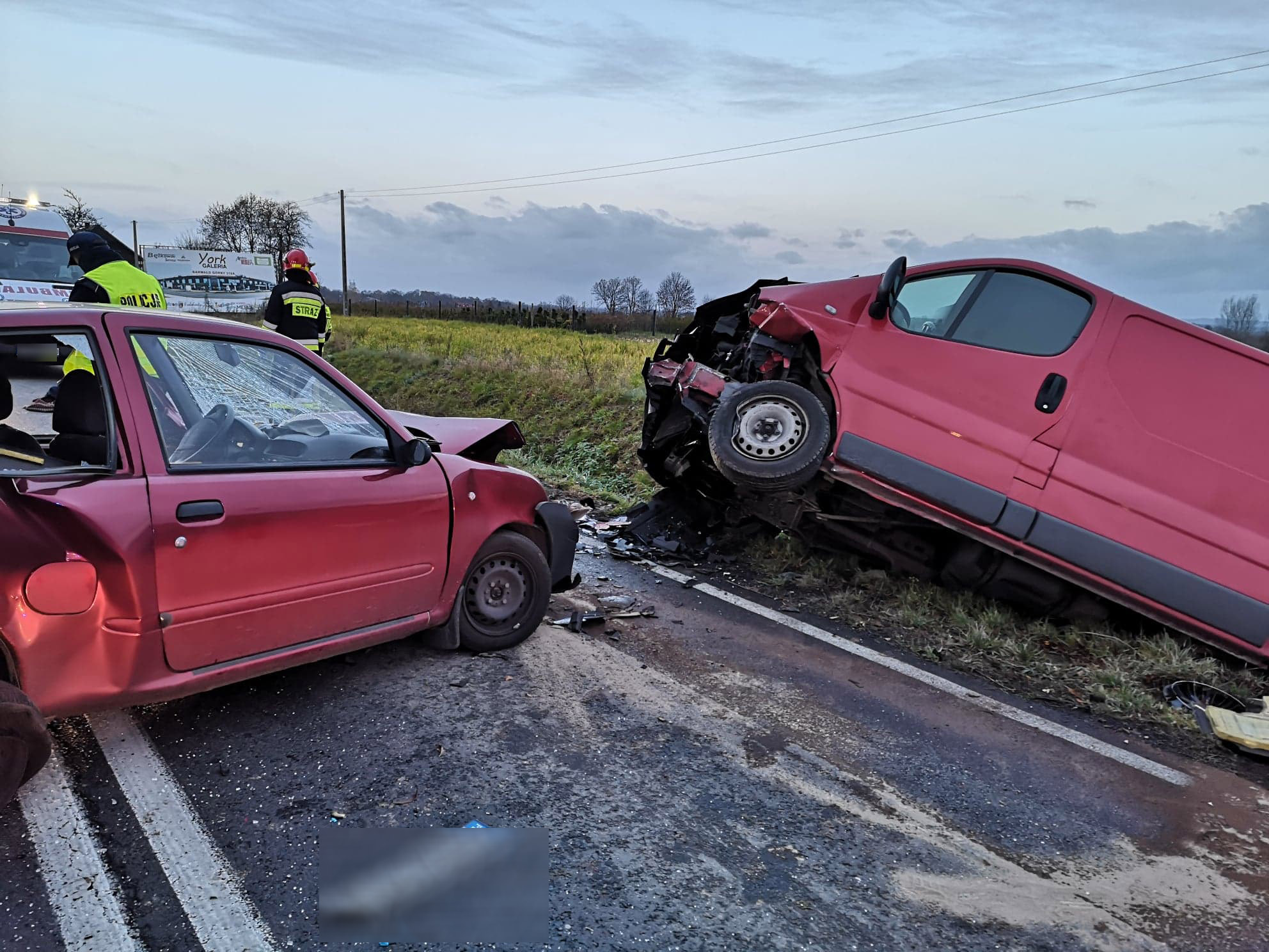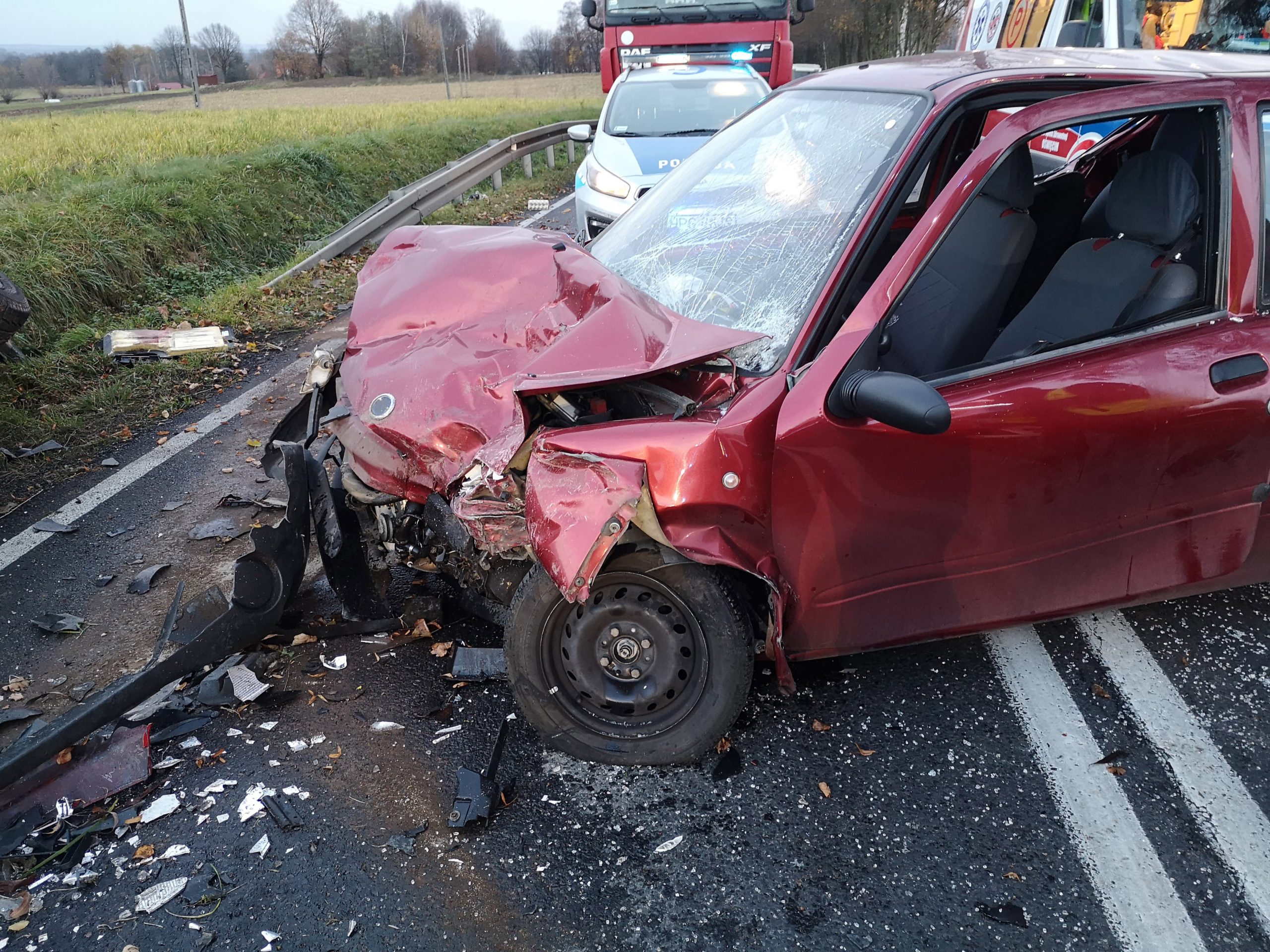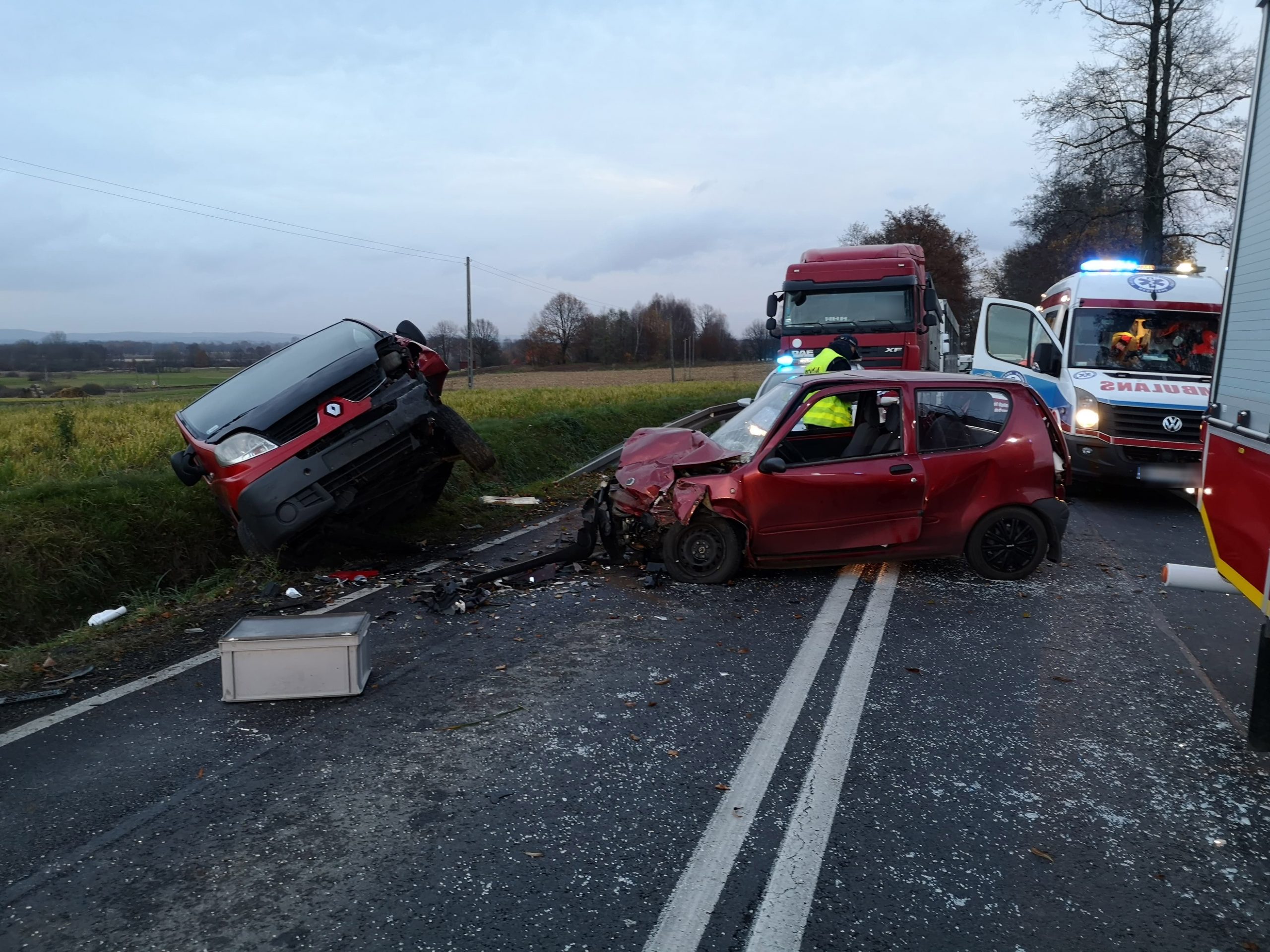 W wyniku zdarzenia bardzo poważnych obrażeń ciała doznał kierowca seicento, który był reanimowany. Ranna została również kierująca renault. Na miejsce zdarzenia przyleciał helikopter medyczny, zabierając młodego mężczyznę do szpitala urazowego w Krakowie. Kobieta została przewieziona przez ZRM do szpitala w Oświęcimiu.