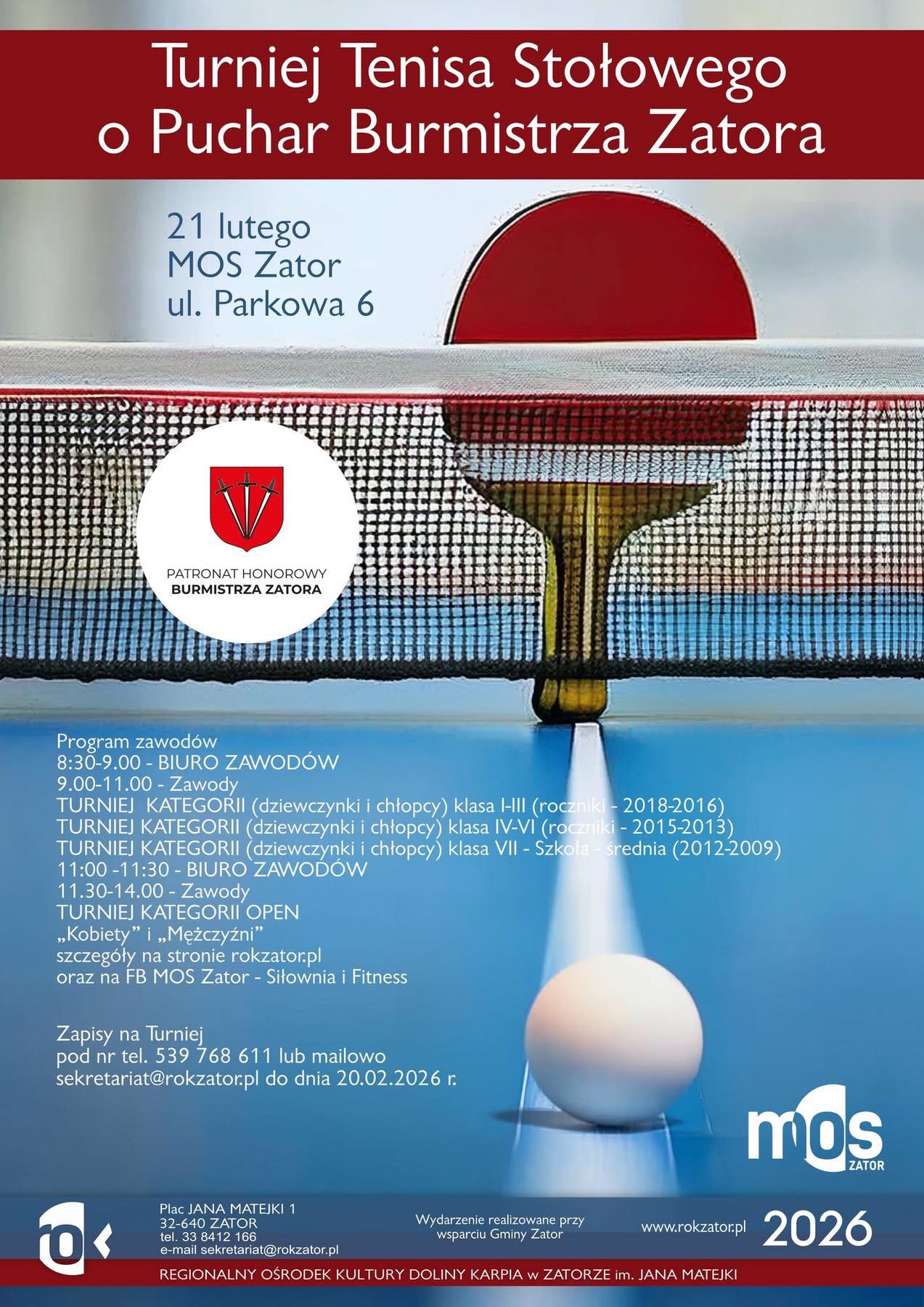 Zapisy przyjmowane są do 20.02.2026 r. pod nr telefonu 539 768 611 lub E-mail: [email protected] do 20 lutego.