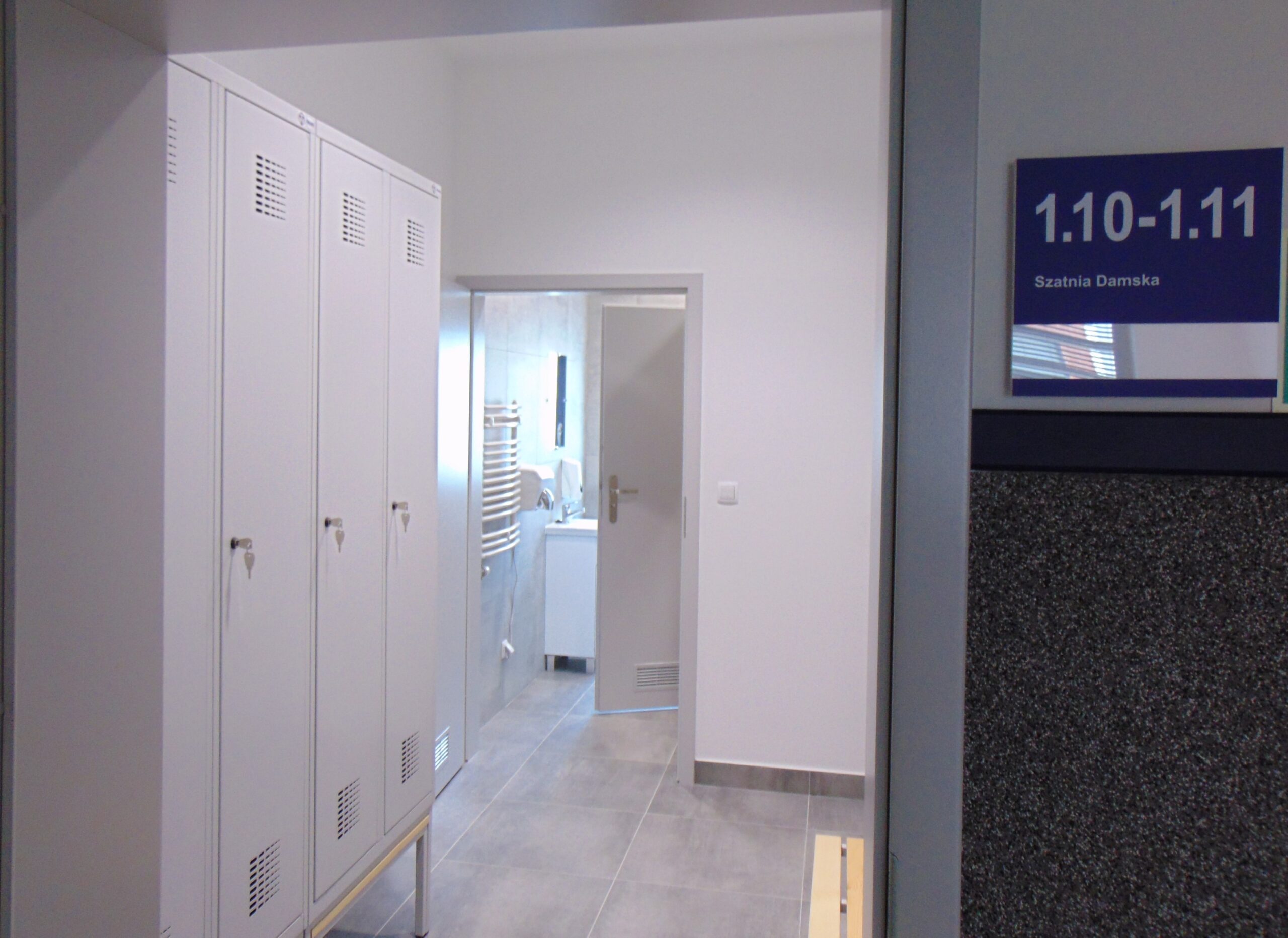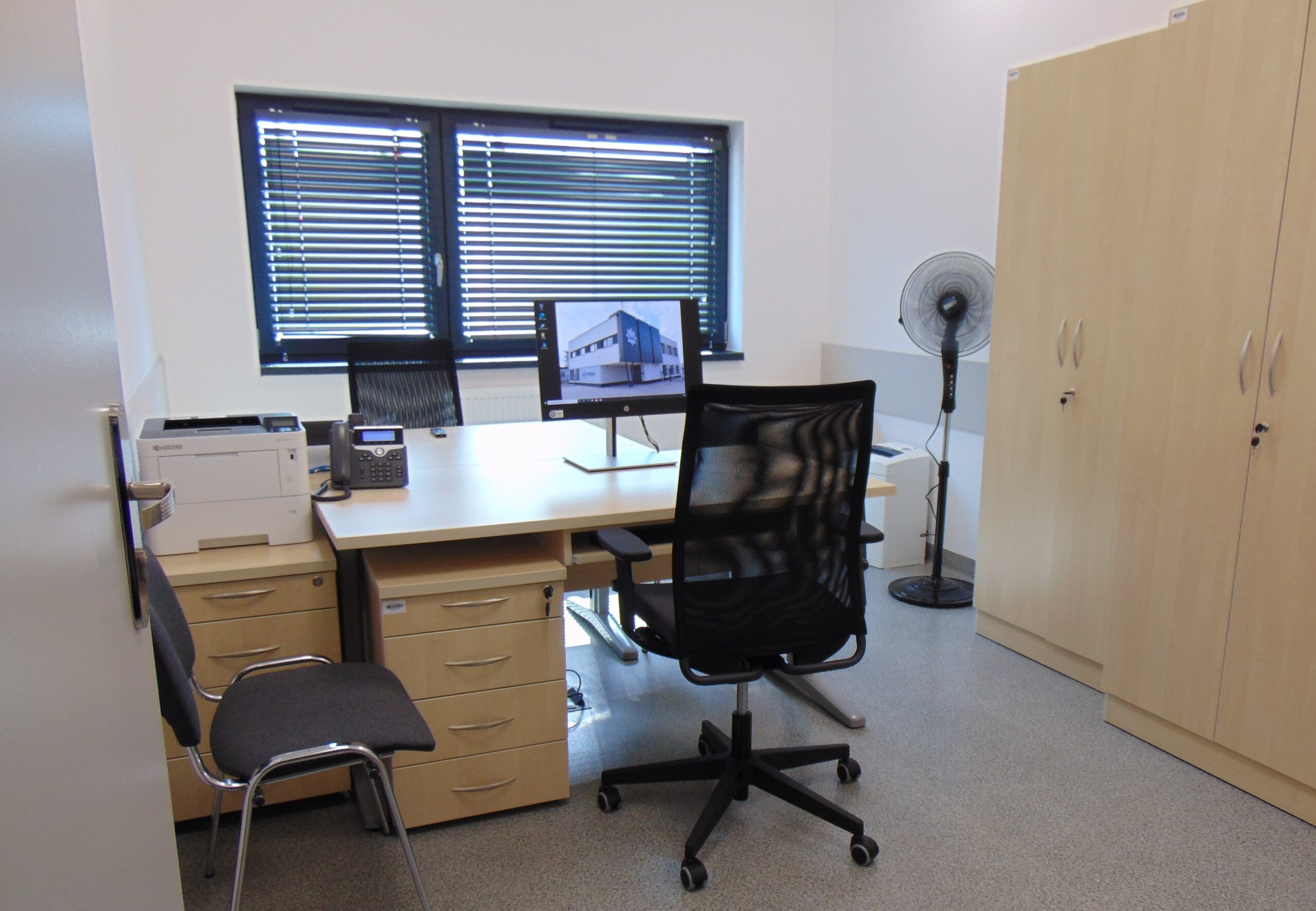 Na I piętrze znajduje się sala narad, pięć biur w których pracują policjanci, pomieszczenie do sporządzania dok niejawnej , pomieszczenie socjalne, szatnia męską i szatnia damska wraz z węzłami sanitarnymi, korytarze, serwerownia, magazyn broni i uzbrojenia, pomieszczenie gospodarcze.