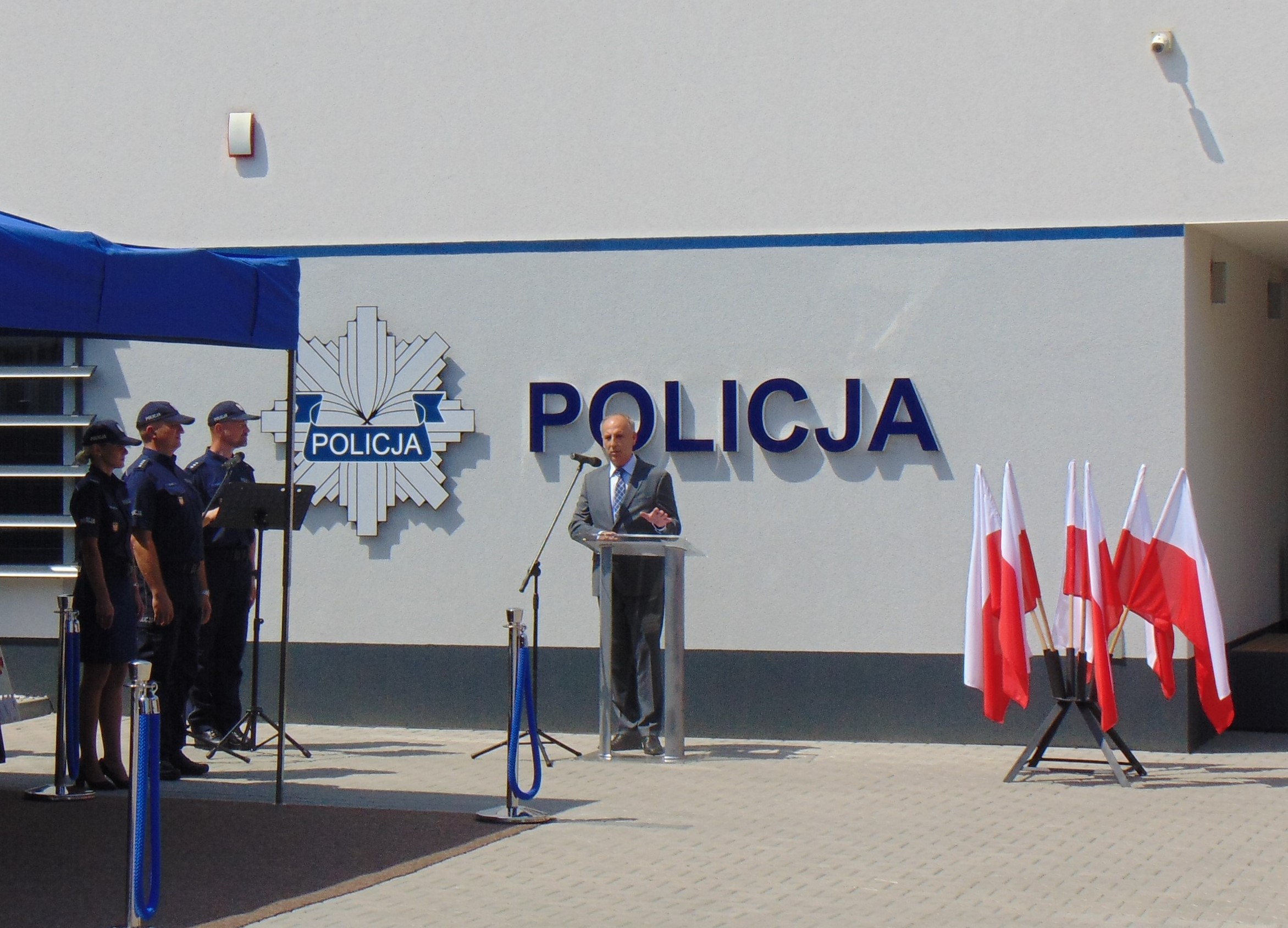 Następnie głos zabrał Wojewoda Małopolski. „Ten budynek z pewnością jest budynkiem, który może być gwarancją, że służba przez was wykonywana, warunki do pracy są jedne z najlepszych w Małopolsce (…) to budynek na miarę XXI wieku. Służba, którą wykonujecie, służba ciężka, odpowiedzialna, służba z narażeniem życia, wymaga tego, aby takie miejsca były najlepsze, nowoczesne, spełniały funkcje, jakie są konieczne w dzisiejszych czasach (…) Środki wydane na budowę nowej siedziby zostały wydane dobrze i właściwie” – powiedział wojewoda. Następnie wspomniał o samorządach, które doskonale rozumieją potrzebę wspierania Policji, dzięki czemu Policja jest dziś blisko obywateli. W dalszej części wystąpienia, wojewoda podziękował nadinsp. Michałowi Ledzionowi oraz insp. Robertowi Chowańcowi za działania prowadzone na rzecz bezpieczeństwa.