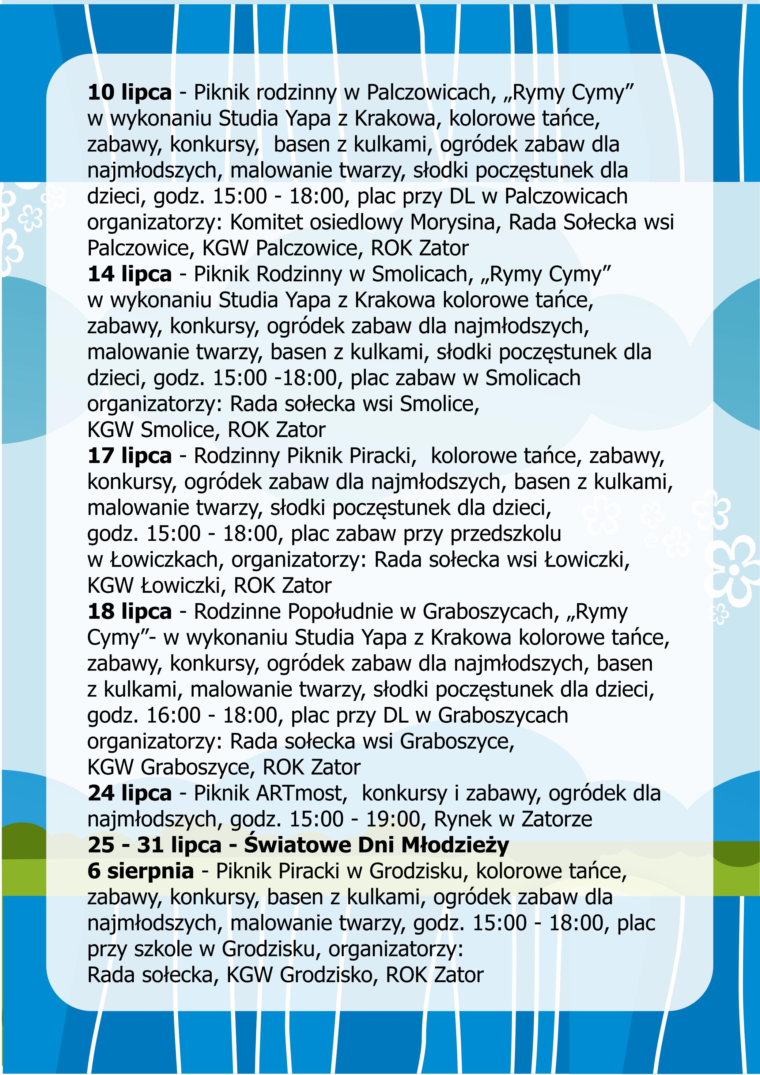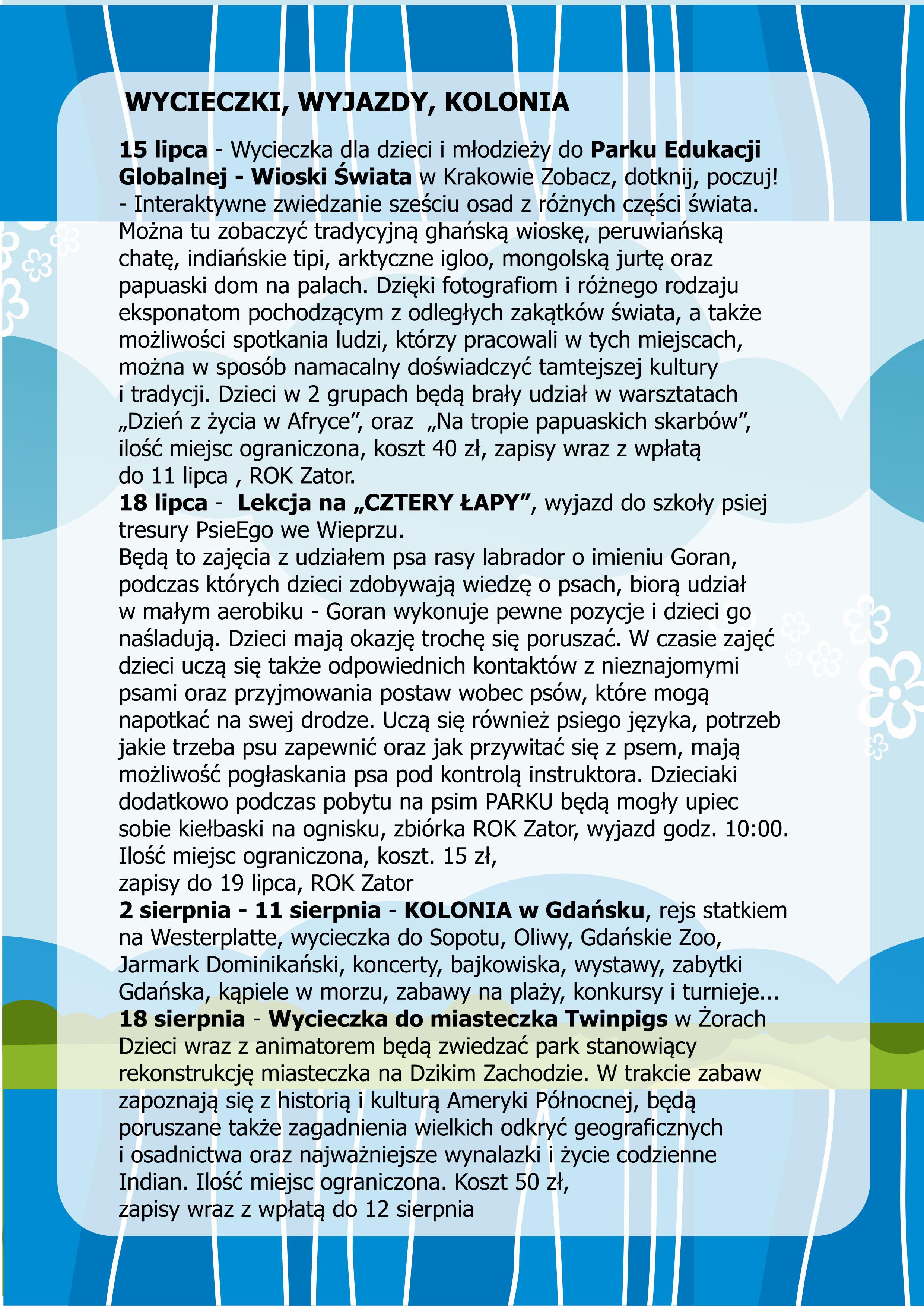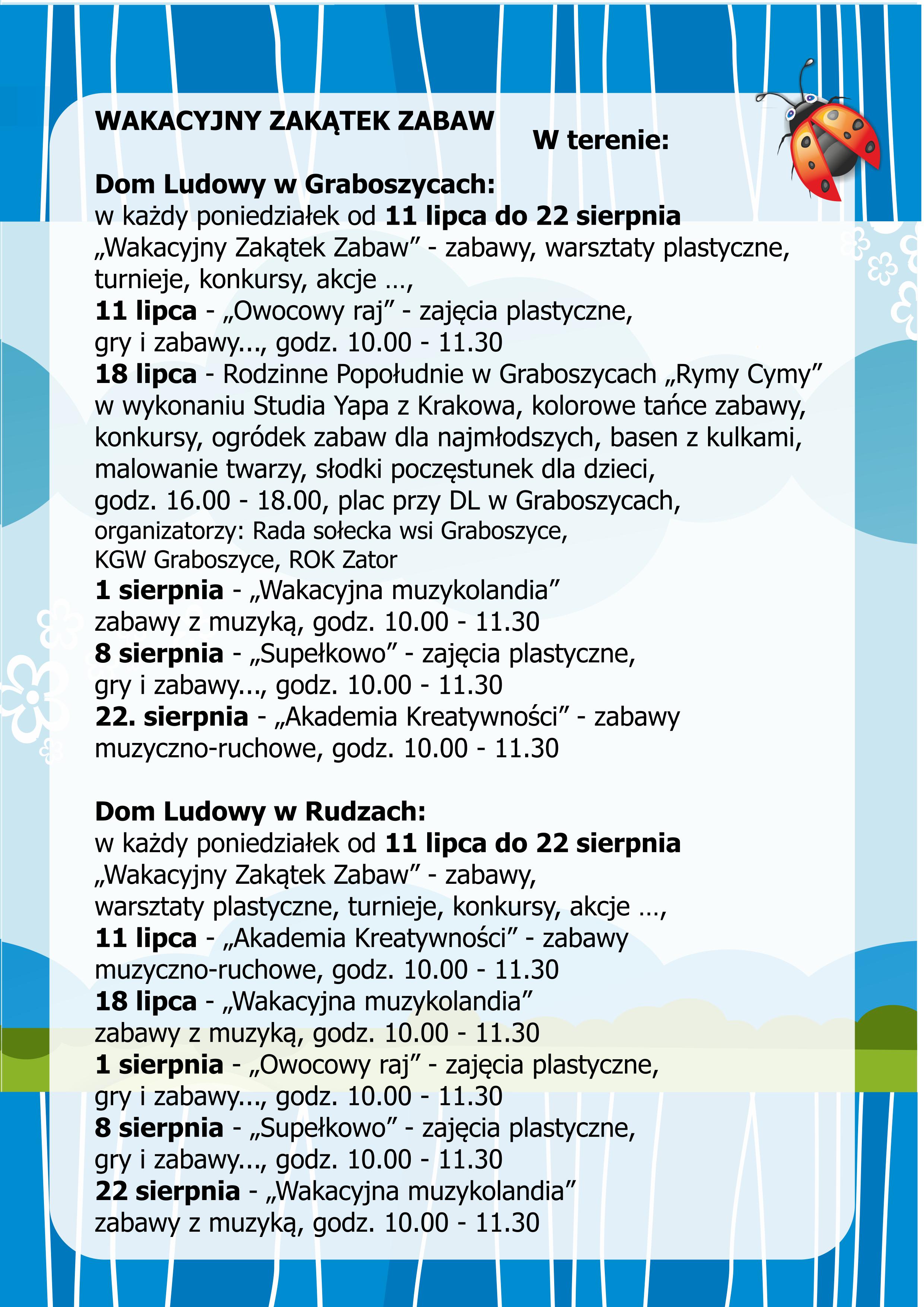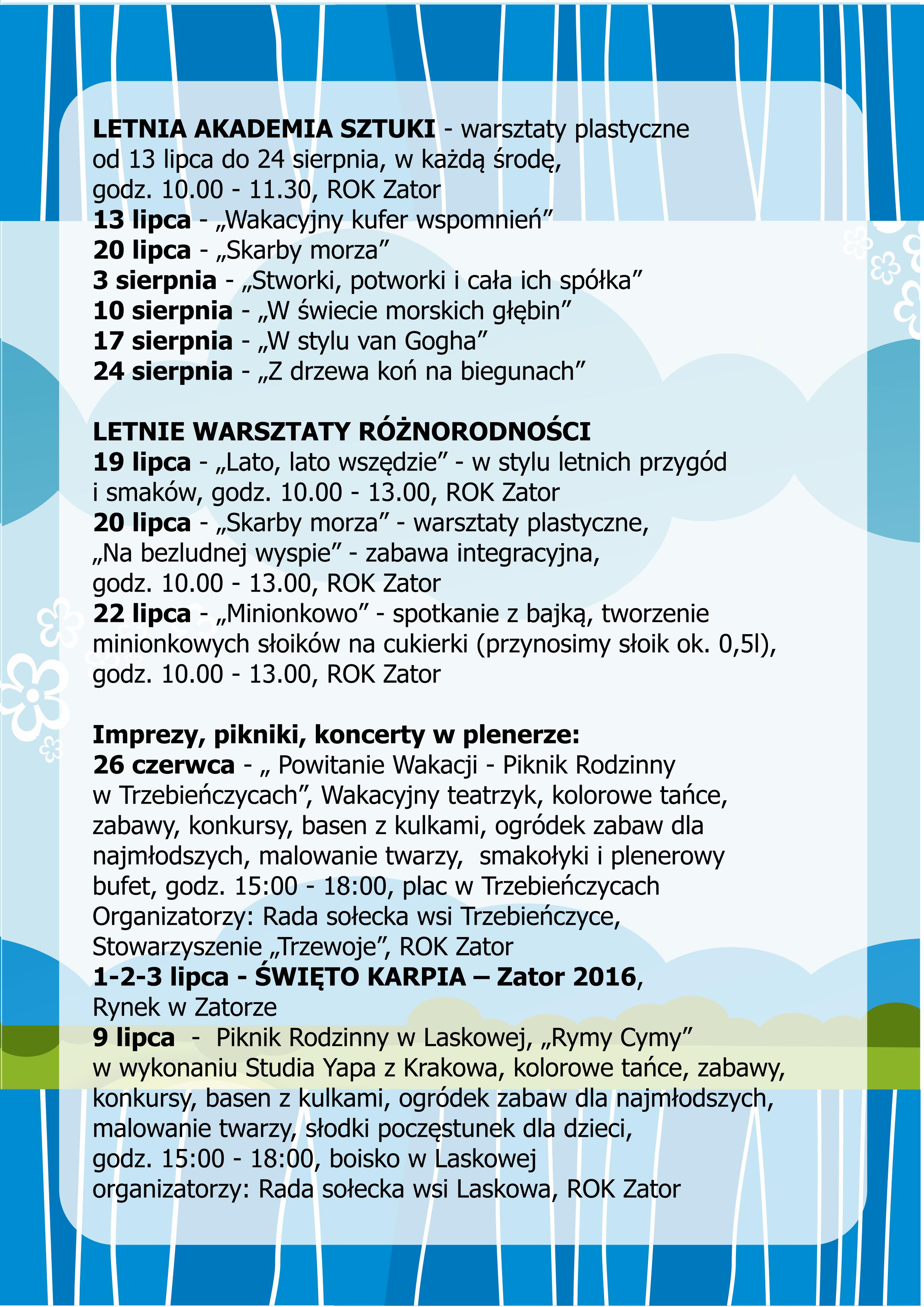 Regionalny Ośrodek Doliny Karpia w Zatorze przygotował szeroką gamę zajęć wakacyjnych.