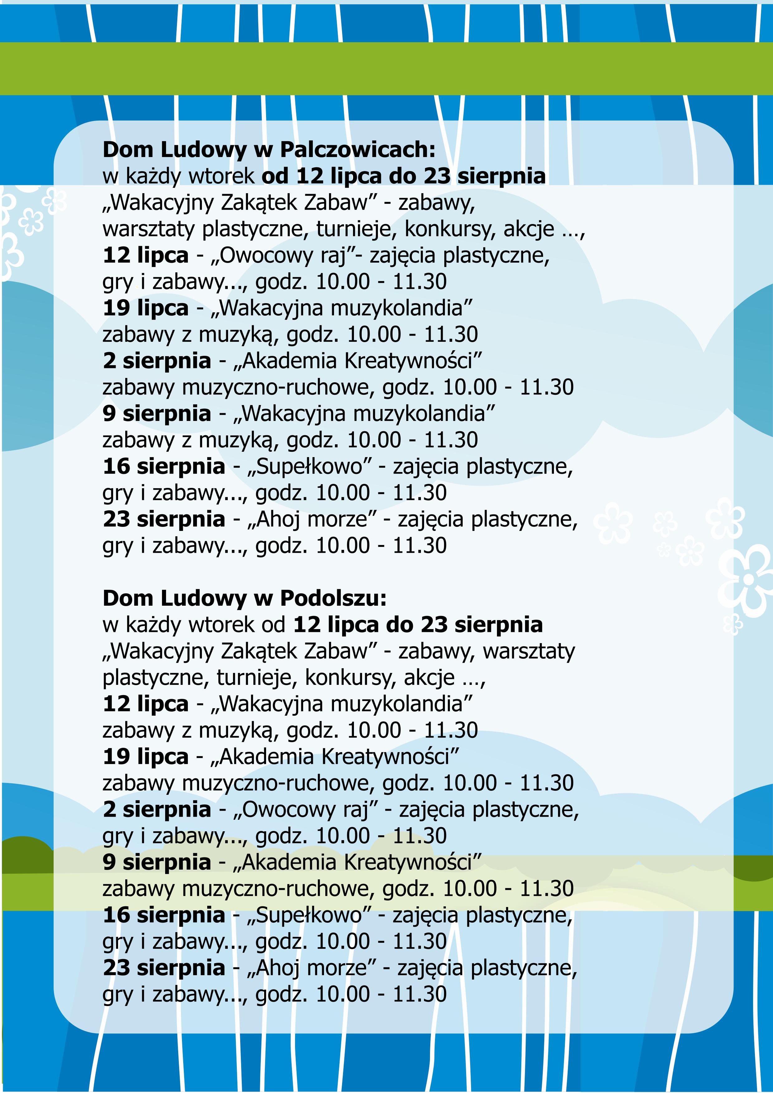 Dodatkowe informacje o poszczególnych zajęciach można będzie znaleźć: