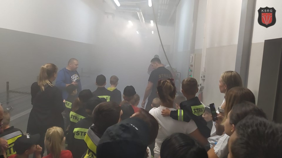 Na miejscu grupą naszych najmłodszych zajął się mł.asp. Przemysław Kciuk. Dzieciaki zwiedziły budynek komendy a między innymi jej serce, czyli Stanowisko Kierowania Komendanta Powiatowego. Tam kilka słów o swojej jakże trudnej pracy opowiedział Dyżurny Operacyjny Powiatu kpt. Maciej Dziura. Następnie odwiedziliśmy garaże gdzie zobaczyliśmy samochody gaśnicze, które służą w naszym powiecie. Na koniec naszego zwiedzania strażacy ze zmiany I przygotowali pomieszczenie pełne dymu a nasze Iskierki mogły zobaczyć jak porusza się strażak w takich warunkach na własnej skórze.