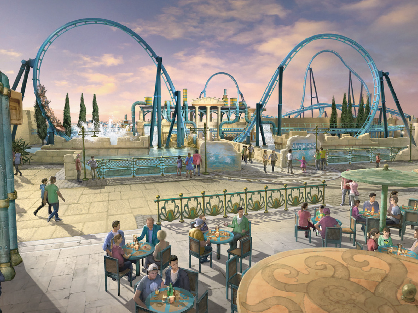 Abyssus osiąga prędkość 100 km/h. Kolejka będzie wynosić nas na nieco ponad 38 metrów wysokości po torze o długości 1316 m. Jednorazowo wagon kolejki zabierze 16 osób, ale to nie koniec atrakcji. Przejazd tym ekstremalnym roller coasterem gwarantuje liczne zwroty, czyli tak zwane inwersje, których atrakcja posiadać będzie aż 5. Już od samego startu atrakcji może podnieść nam się adrenalina, bowiem kolejka rozpędza się do ogromnej prędkości w zaledwie kilka sekund. Nie zabraknie wrażeń także na dalszych etapach trasy. Gdy roller coaster zacznie tracić na prędkości, zostaniemy dopędzony jeszcze raz. Dla lubiących szybować w chmurach, producenci atrakcji zapewnili efekty nieważkości, niespodziewane efekty grawitacyjne oraz wiele efektów wodnych takich jak: wodospady, jeziora i fontanny. Za projekt odpowiada holenderska firma Vekoma. Wagony i aranżacja Abyssusa nawiązują do starożytnego zatopionego miasta Aqualantis. Infrastruktura nowego roller coastera całkowicie położona jest na wodzie, jednak jego twórcy zapewniają, że został tak skonstruowany by nie można było się zmoczyć.
