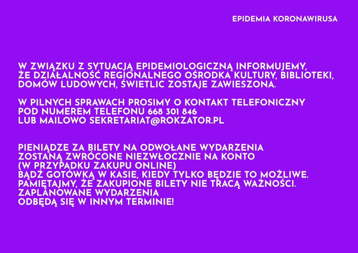 - REKLAMA - Strona głównaFakty i Wydarzenia #ZATOR W związku z epidemią koronawirusa ROK zawiesza działalność 17 marca 2020 234 0 Musisz przeczytać #SMOLICE Jutrzejsze przerwy w dostawie prądu 26 stycznia 2026 Bilet za złotówkę dla uczniów z małopolski w czasie ferii 26 stycznia 2026 #RUDZE Jutrzejsze przerwy w dostawie prądu 28 stycznia 2026 Podlodowe zawody wędkarskie 27 stycznia 2026 - REKLAMA - Komunikat Regionalnego Ośrodka Kultury w Zatorze Tagiepidemiakomunikatrok nieczynnyrok zatorzawieszenie działalności Poprzedni artykułAkcja szycia maseczek dla personelu medycznegoNastępny artykuł#RUDZE 60 – letni mieszkaniec gminy Zator utonął w stawie - REKLAMA - Popularne #PODOLSZE Jutrzejsze przerwy w dostawie prądu 29 stycznia 2026 #RUDZE Jutrzejsze przerwy w dostawie prądu 28 stycznia 2026 Podlodowe zawody wędkarskie 27 stycznia 2026 ZOSTAW ODPOWIEDŹ Anuluj odpowiedź Komentarz: Proszę wpisać swój komentarz! Nazwa:* Proszę podać swoje imię tutaj E-mail:* Wpisałeś nieprawidłowy adres e-mail! Wpisz tutaj swój adres e-mail Strona Internetowa: Zapisz moje nazwisko, adres e-mail i stronę internetową w tej przeglądarce na następny raz, gdy skomentuję. Δ Zator zachmurzenie duże enter location -0 ° C -0 ° -0 ° 88 % 6.2kmh 100 % czw. 2 ° pt. 1 ° sob. -4 ° niedz. -6 ° pon. -6 ° - REKLAMA -