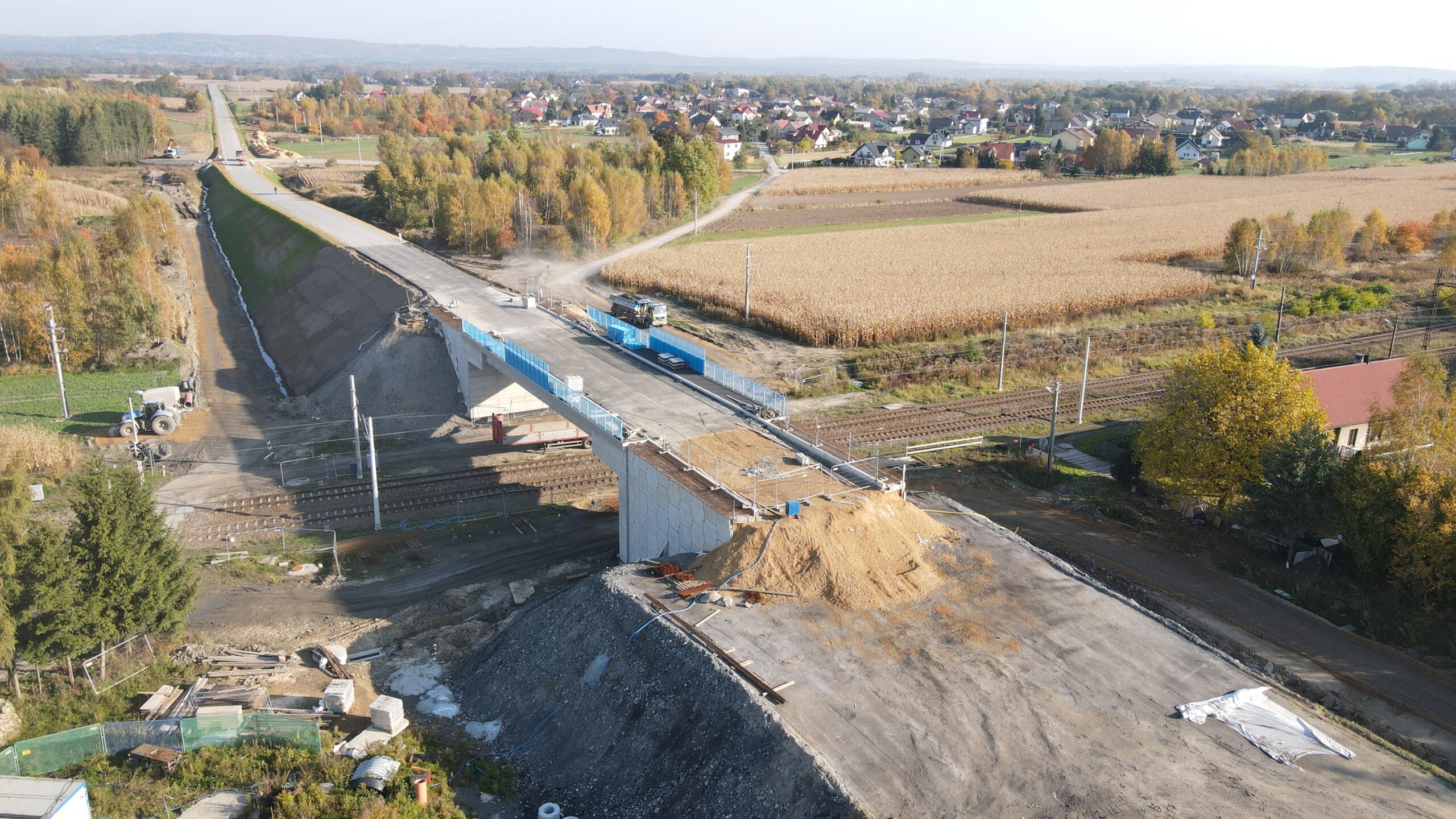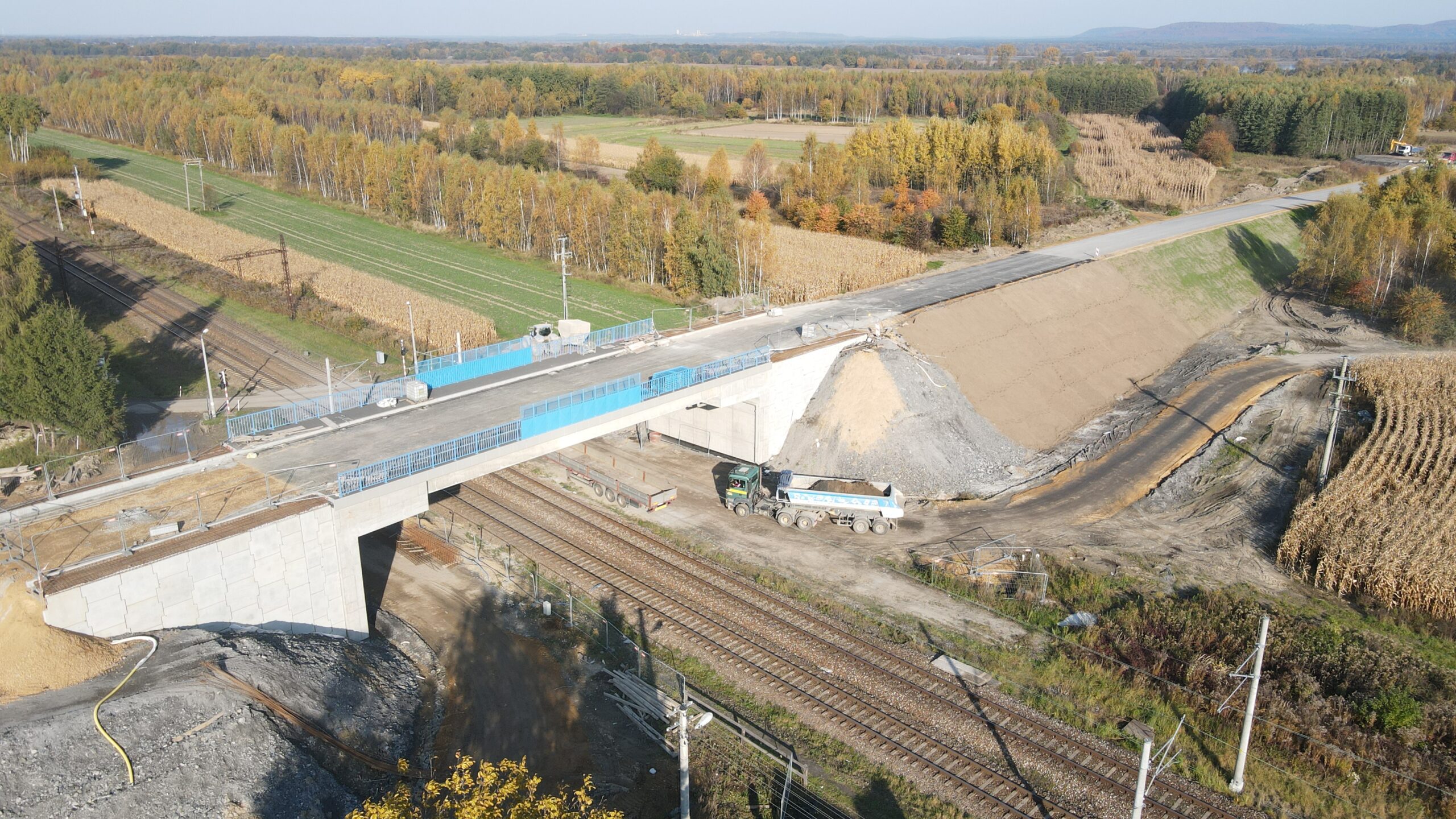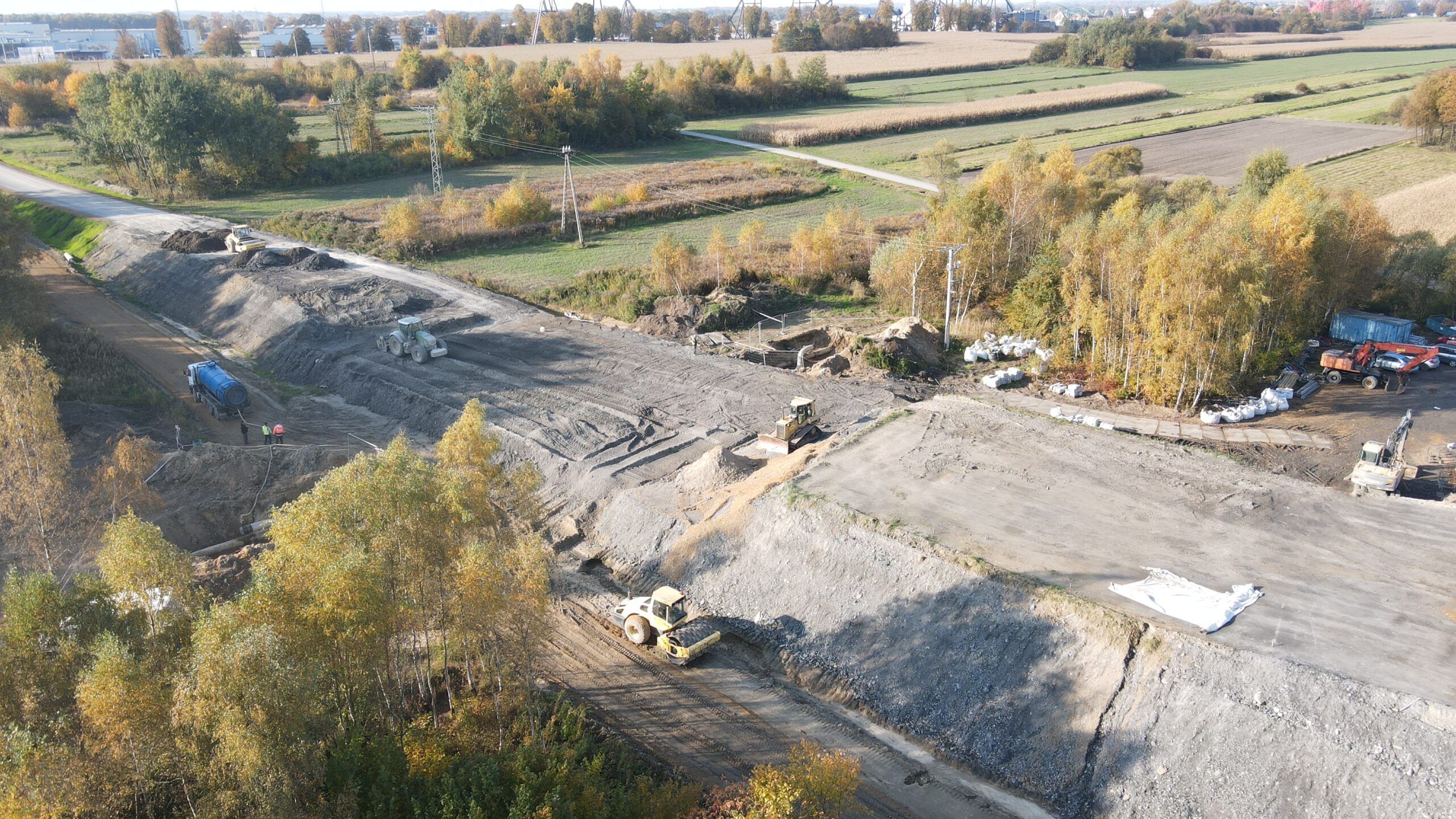 Kolejny etap budowy obwodnicy Podolsza zarejestrowany z lotu ptaka w dniu 21 października 2021.