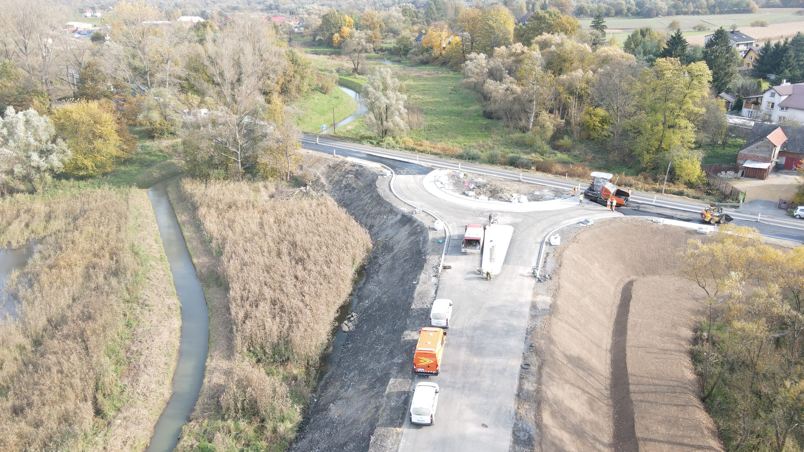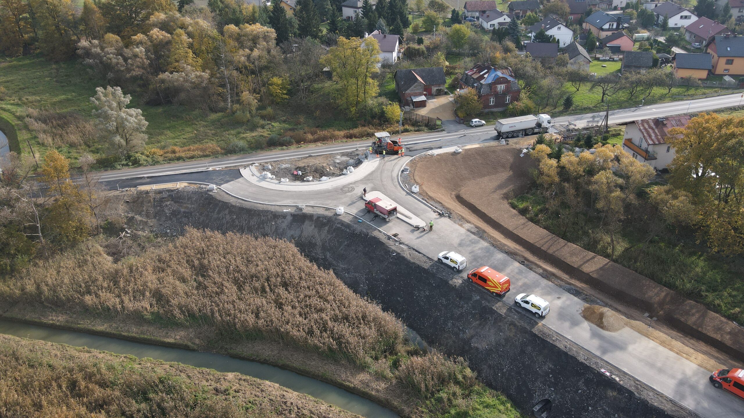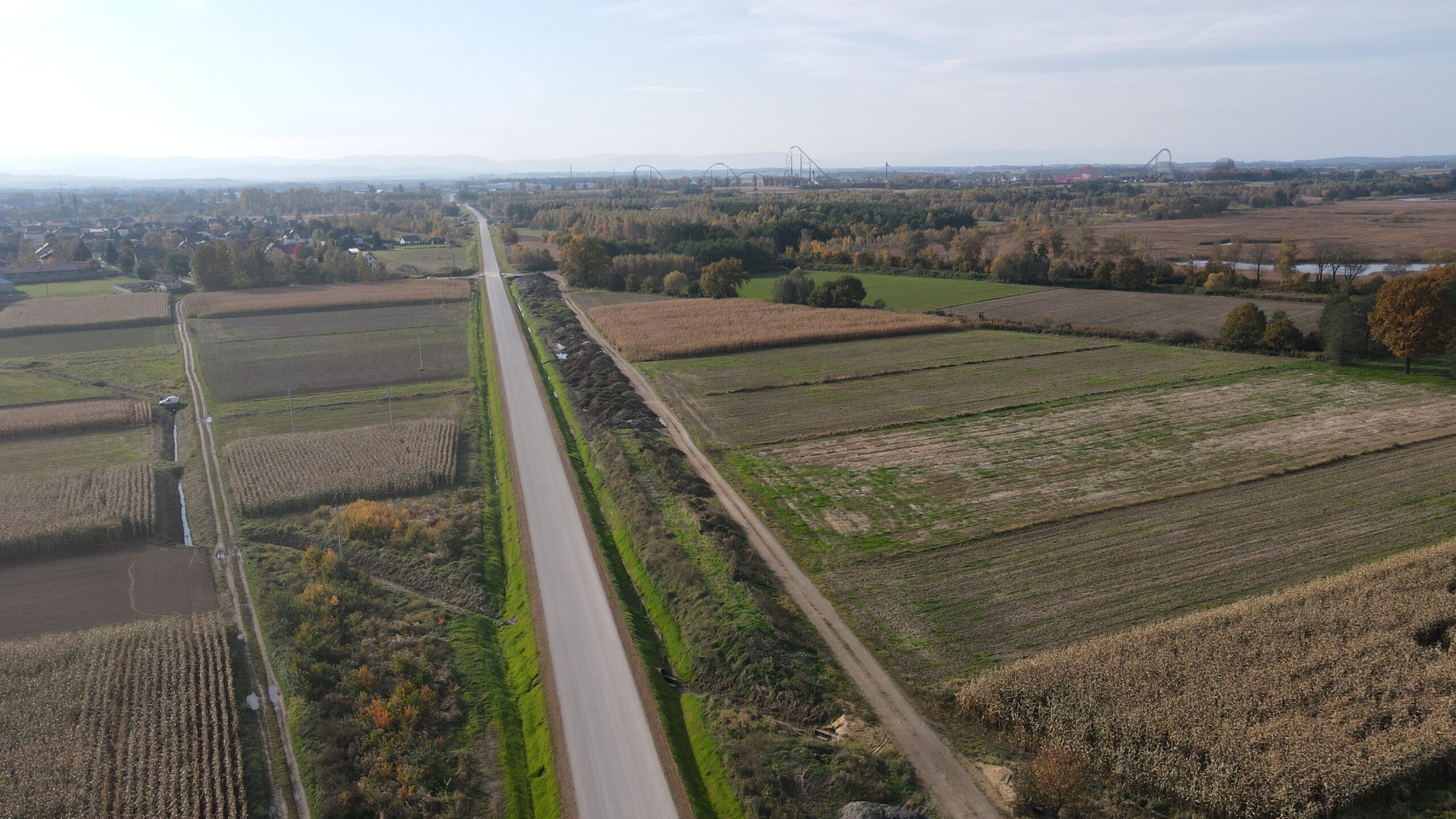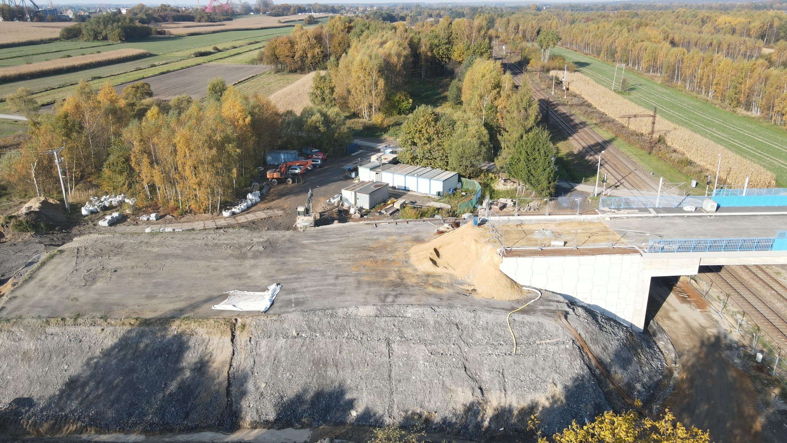 Kolejny etap budowy obwodnicy Podolsza zarejestrowany z lotu ptaka w dniu 21 października 2021.
