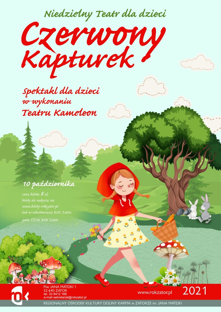 Ze spektaklem o Czerwonym Kapturku wystąpi dla Was Teatr Kameleon. Bilety można kupić >>>TUTAJ<<<. Zapraszamy! Początek spektaklu o godz. 15:00.