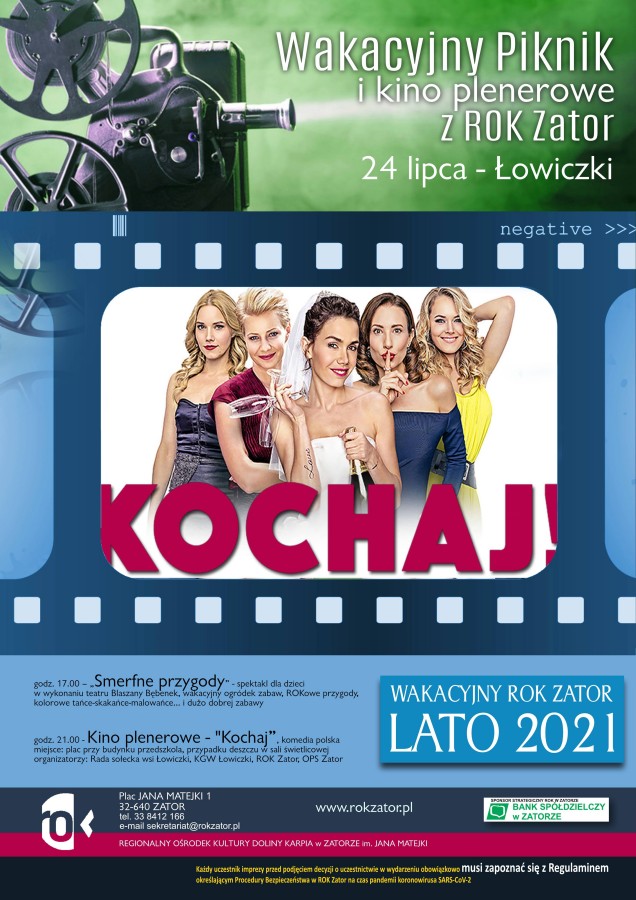 O 17:00 na placu przy przedszkolu obejrzymy spektakl „Smerfne przygody” i trochę poszalejemy a o 21:00, w tym samym miejscu, rozsiądziemy się wygodnie i obejrzymy polską komedię „Kochaj”. Zapraszamy w imieniu ROK, Rady Sołeckiej Łowiczek, KGW Łowiczki oraz OPS Zator.