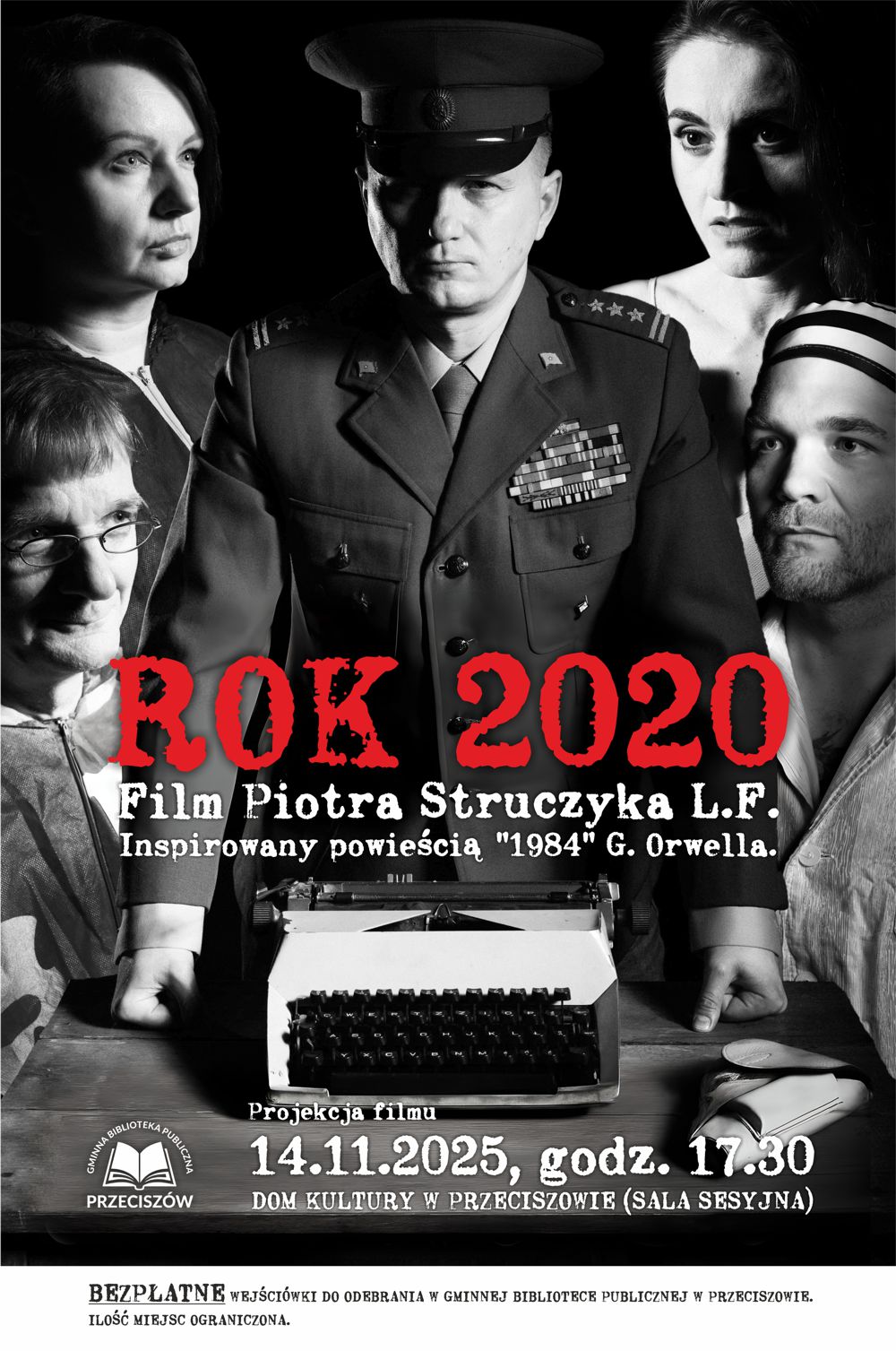 Już w piątek, 14 listopada 2025 roku, o godzinie 17:30 w sali sesyjnej Domu Kultury w Przeciszowie odbędzie się wyjątkowe wydarzenie kulturalne – prezentacja filmu Piotra Struczyka „Rok 2020”, inspirowanego klasyczną powieścią George’a Orwella „1984”.