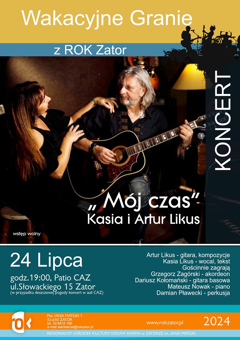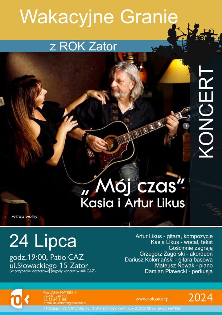 - REKLAMA - Strona głównaKultura Wakacyjne granie z ROK Zator. Kasia Likus i Artur Likus 16 lipca 2024 242 0 Musisz przeczytać #SMOLICE Jutrzejsze przerwy w dostawie prądu 26 stycznia 2026 Bilet za złotówkę dla uczniów z małopolski w czasie ferii 26 stycznia 2026 #RUDZE Jutrzejsze przerwy w dostawie prądu 28 stycznia 2026 Podlodowe zawody wędkarskie 27 stycznia 2026 - REKLAMA - 24 lipca zapraszamy na patio CAZ na koncert Kasi Likus i Artura Likusa. Początek koncertu o 19:00. W razie deszczu koncert w AULI CAZ. Wstęp wolny. Info: ROK Zator Tagikoncert Kasi Likus i Artura Likusakoncert rok zatorwakacyjne granie zator Poprzedni artykułJutrzejsze przerwy w dostawie prąduNastępny artykułNiech żyje nam! Za nami wyjątkowy weekend w Energylandii! - REKLAMA - Popularne Piosenki Ewy Demarczyk na scenie w Domu Kultury w Przeciszowie 29 stycznia 2026 Widowisko teatralne – pastorałka Leona Schillera w Przeciszowie 7 stycznia 2026 Wino, kobiety i śpiew czyli Operetkowy Koncert Noworoczny 7 stycznia 2026 ZOSTAW ODPOWIEDŹ Anuluj odpowiedź Komentarz: Proszę wpisać swój komentarz! Nazwa:* Proszę podać swoje imię tutaj E-mail:* Wpisałeś nieprawidłowy adres e-mail! Wpisz tutaj swój adres e-mail Strona Internetowa: Zapisz moje nazwisko, adres e-mail i stronę internetową w tej przeglądarce na następny raz, gdy skomentuję. Δ Zator zachmurzenie duże enter location -1.1 ° C -1 ° -1.1 ° 94 % 5.3kmh 100 % pt. -0 ° sob. -4 ° niedz. -7 ° pon. -6 ° wt. -1 ° - REKLAMA -