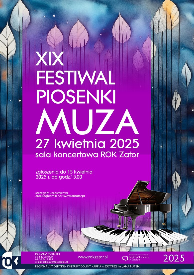 XIX Festiwal Piosenki „MUZA” dn. 27 kwietnia 2025 r. w Regionalnym Ośrodku Kultury Doliny Karpia w Zatorze