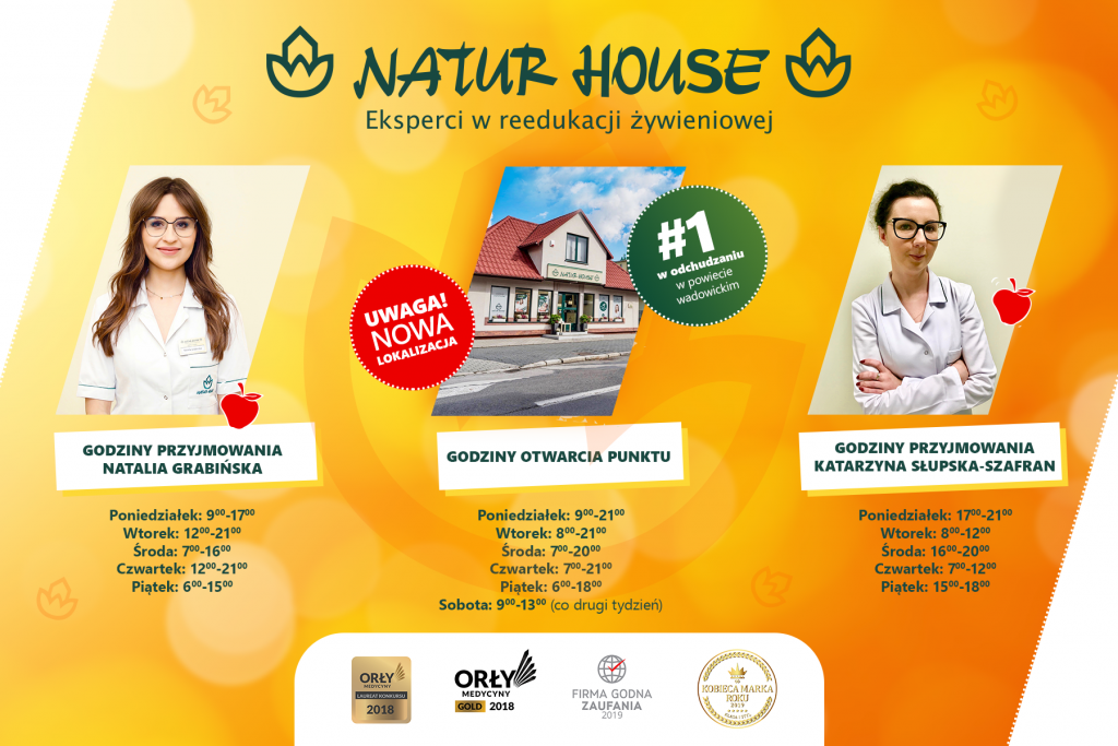 Naturhouse w Wadowicach skutecznie odchudza od 2010 roku a od ponad dwóch lat jest w nowej dogodniejszej lokalizacji. Doświadczenie i ciągłe podnoszenie kwalifikacji zawodowych pozwala naszym ekspertom na fachową pomoc wszystkim osobom, które do nas przychodzą. Nasi dietetycy przyjmują nie tylko pacjentów z problemami wagowymi, ale tworzą również diety dla sportowców, osób z różnymi jednostkami chorobowymi (takimi jak np. choroba Hashimoto, niedoczynność tarczycy, Insulinooporność, IBS, itd.). Ponadto nasi dietetycy tj. Natalia Grabińska i Katarzyna Słupska – Szafran tworzą diety dla dzieci od 6 roku życia, oraz dla par starających się o potomstwo.