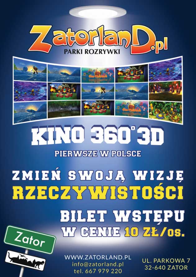Do licznych atrakcji jakie oferuje Parki Rozrywki Zatorland dołączyło jedyne w Polsce i Europie kino 360 3D. Obraz otacza widzów ze wszystkich stron i sprawia wrażenie jakby znajdowali się w centrum rozgrywającej się akcji. Jest to kino efektów, gra kolorów i dźwięku w trójwymiarze.