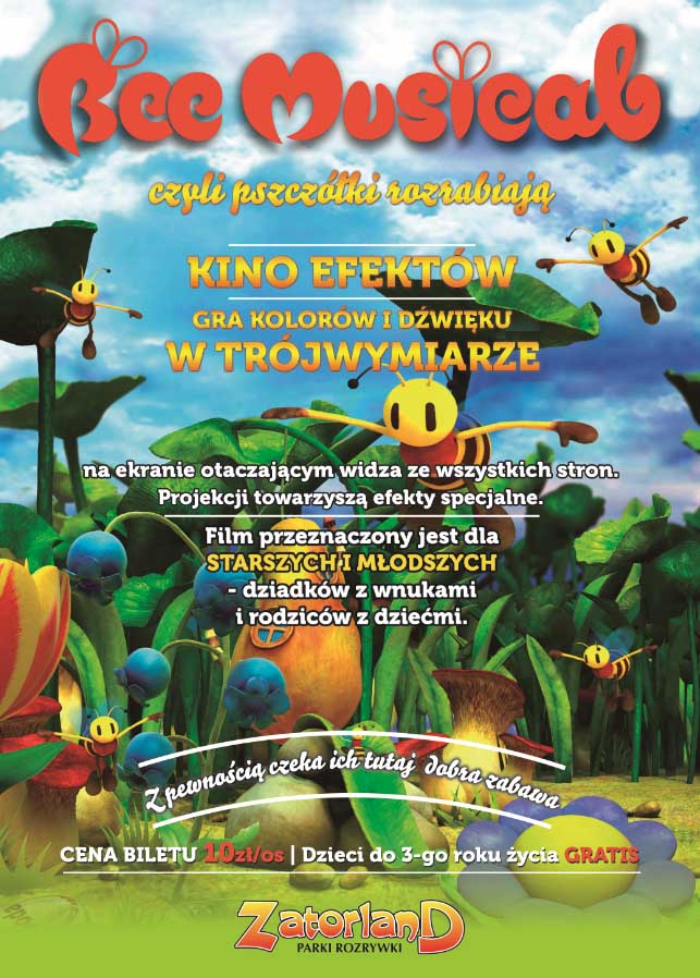 W ramach seansu można obejrzeć „Bee Musical, czyli pszczółki rozrabiają“. Projekcji filmu we wszystkich kierunkach towarzyszą dodatkowe atrakcje, które oddziałując na zmysły widzów potęgują wrażenie uczestniczenia w oglądanym obrazie. Widz może poczuć wiatr, zapach miodu i kwiatów, zobaczyć śnieg, dym, bąbelki i lasery.