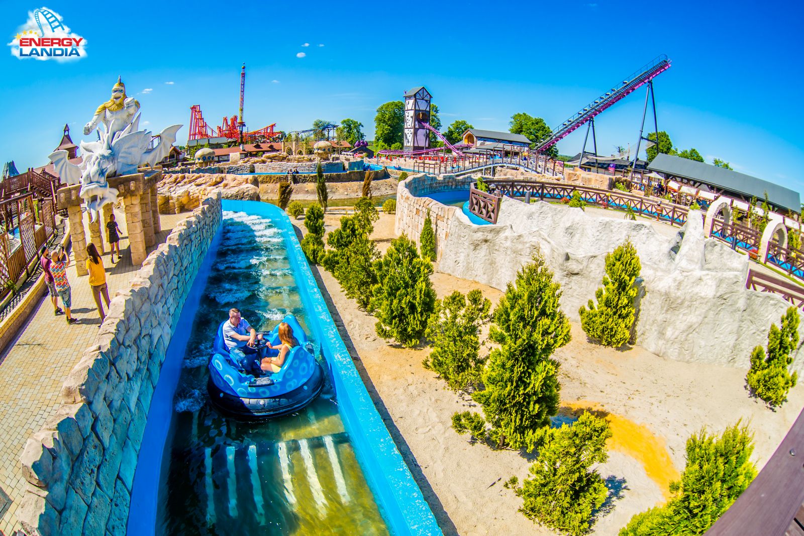 Chyba każdy jako dziecko uwielbiał wskakiwać do kałuży, by się nieco ochlapać. Goście Parku Rozrywki w Zatorze udowodnili, że wodne splashe sprawiają taką samą radość tym młodszym, jak i starszym. Jednak tutaj pluskanie się w kałuży zastępują rozbudowane atrakcje wodne. Wśród nich chociażby sprawiająca wiele frajdy bitwa wodna Splash Battle. Czteroosobowe łodzie z zainstalowanymi armatkami wodnymi pozwalają toczyć wodną batalię między rodzinami, ale i innymi Gośćmi Parku. Co ciekawe sami musimy uważać, czy nie ochlapie nas ktoś z zewnętrznych armatek zainstalowanych wokół tej atrakcji. Poszukiwacze przygód z pewnością udadzą się do Wyspy Skarbów, w której przepłyniemy łodzią po dwóch wodospadach! Fani wodnych przygód z pewnością skuszą się także na pontony płynące po dzikiej rzece. W Energylandii znajdziemy spływ wodny Atlantis i jego rozbudowaną wersję – Jungle Adventure. A gdy już poczujemy zmęczenie odprężyć możemy się na leżakach w towarzystwie piaszczystej plaży, palem oraz potężnego basenu i brodzików.