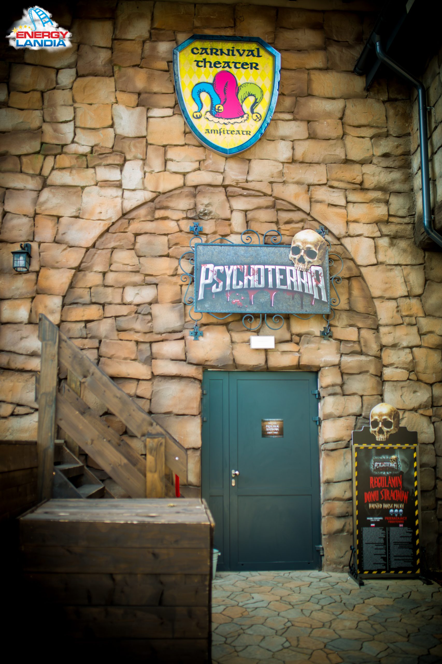 Zapraszamy do Domu Strachów Psychoterria – opuszczonego szpitala psychiatrycznego. Ten Dom Strachów jest naprawdę przerażający i tylko dla ludzi o bardzo mocnych nerwach. Atrakcja dostępna jest dla osób od 16 roku życia, znajduje się w Smoczym Grodzie w strefie Carnival Theater.