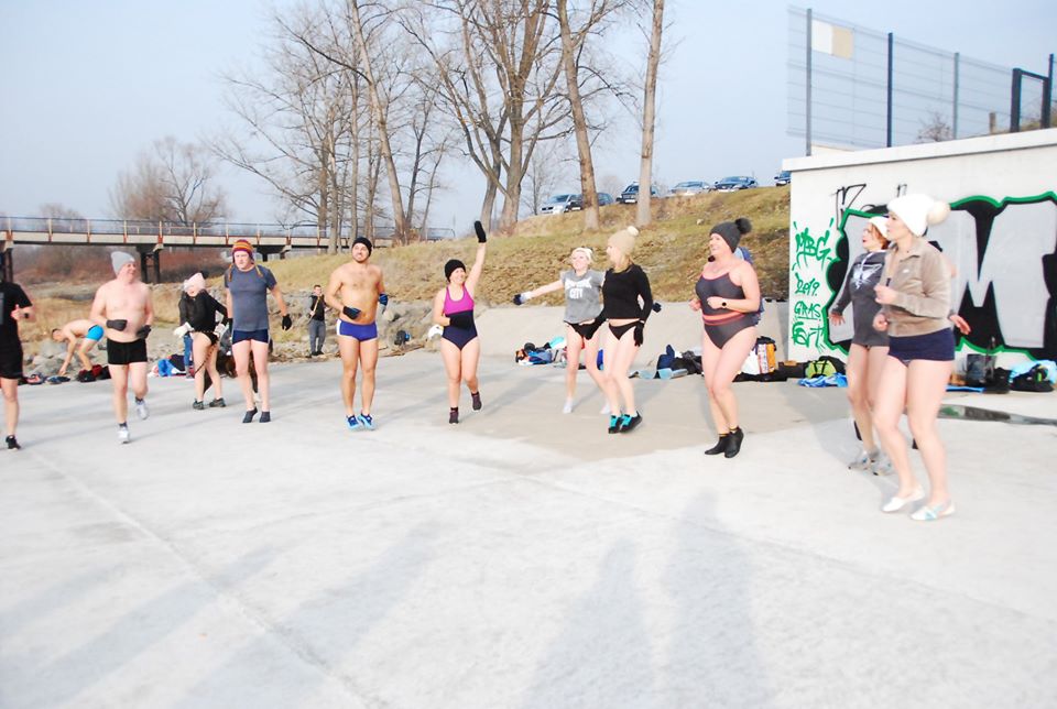 W efekcie niedzielnego spotkania całkiem spora grupa osób rozpoczynając od solidnej rozgrzewki skorzystała z zimnej kąpieli wodnej.