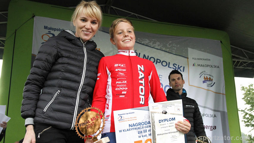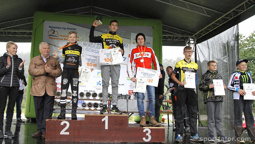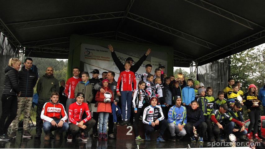 Zdecydowane zwycięstwa w większości kategorii wiekowych i miejsca na podium w młodzikach i żakach to już standard w wykonaniu kolarzy Sokoła. Tym razem Myślenice gościły najlepszych kolarzy regionu Polski południowej. Dotarli nie tylko najlepsi ale również najwytrwalsi zawodnicy z kilkudziesięciu klubów. Zmagania w finale to nie tylko walka z arcytrudną trasą, mocnymi rywalami ale również niestety z ulewnym zimnym deszczem i wszechobecnym błotem oraz podtopieniami na trasie. W kategorii elita zwyciężył Michał Topór, w kategorii juniorów zwycięża Stanisław Nowak, w juniorach młodszych zwycięzcą zostaje Michał Śliwiński, jako trzeci młodzik do mety dociera Kamil Łaziński a kilka pozycji za nim Maks Wiśniowski. W najmłodszej kategorii żaków, wśród chłopców lideruje Dawid Śliwiński a wśród dziewcząt, na drugim miejscu zawody kończy Inez Durlak. Zawodników dekorowała Mistrzyni Świata, wielokrotna Mistrzyni Polski Anna Szafraniec – Rutkiewicz oraz jeden z najlepszych polskich kolarzy szosowych – Marek Rutkiewicz. W zawodach nie wystąpiła Gabriela Wojtyła, która reprezentowała klub podczas Bike Expo oraz Marcin Sermak z powodu kontuzji. W klasyfikacji generalnej całej ligi, zatorski klub zajmuje drugie miejsce w rankingu teamów. Szczególna podziękowania dla wszystkich rodziców i sympatyków klubu, którzy licznie przybyli dopingować zawodników oraz pomagać przy obsłudze kolarzy podczas wyścigu. Obecnie zawodnicy przygotowują się do Pucharu Polski, który odbędzie się już w sobotę w Głuchołazach.